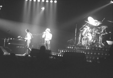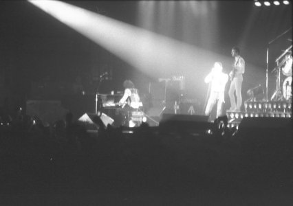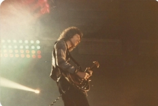 Queen's gigs in The Netherlands would now be played at the Groenoordhallen in Leiden. Bands often made this transition when engineers determined that their lighting rigs grew beyond what the Ahoy in Rotterdam could handle. Before Mustapha, Freddie notices some bicycle bells in the audience and comments on it. But unfortunately for these ambitious audience members, Queen aren't playing Bicycle Race on this tour, nor will they ever again (although Brian May does tease them with a few of the trills from the guitar solo). At the end of the second chorus of Need Your Loving Tonight, Freddie adds a not so quaint "fuck me" before Brian jumps into the guitar solo. Brian, after Now I'm Here: "Good evening, folks of Holland. You know you sing.. so beautifully. You know, you sang on our live album. Did you know that? Good, good. We'd like you to do a special bit of singing for us. Will you do that?" The audience knows exactly what's coming next. "This is called Love Of My Life." The audience sing every word to perfection, to which Mercury calls "the best singing I've heard in ages." Battle Theme sees Brian playing one of the synth lines on the guitar just before he leads the band back into Brighton Rock. At the end of the show, Freddie says, "You've been a truly fabulous audience tonight!" That's definitely not something he said every night. It must have been a fantastic atmosphere, as the audience sang along with nearly every song. Here is a review of the show from the next day's paper. The first picture was taken by Martin de Jong. The fifth photo set was taken by Peter Koks, and the last set was taken by Tim de Scally (the last of which was snapped shortly after the show ended; Tim also submitted the fourth set). |