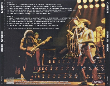 | Track listing: | Jailhouse Rock, We Will Rock You (fast), Let Me Entertain You, Play The Game, Mustapha, Death On Two Legs, Killer Queen, I'm In Love With My Car, Get Down Make Love, Need Your Loving Tonight, Save Me, Now I'm Here, Dragon Attack, Now I'm Here (reprise), Fat Bottomed Girls, Love Of My Life, Keep Yourself Alive, drum/guitar solos, Battle Theme, The Hero, Brighton Rock (ending), Crazy Little Thing Called Love, Bohemian Rhapsody, Tie Your Mother Down, Another One Bites The Dust, Sheer Heart Attack, We Will Rock You, We Are The Champions, God Save The Queen |