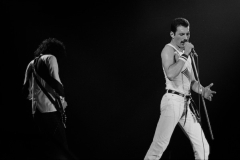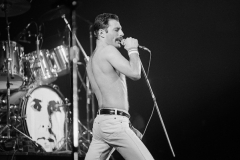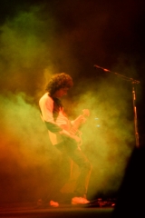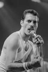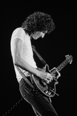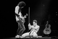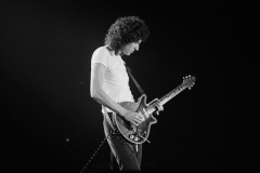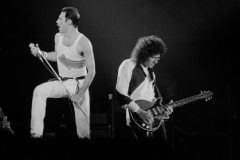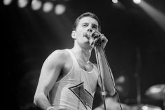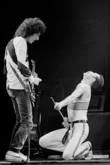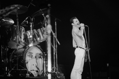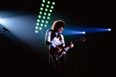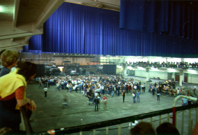 After playing the South American football stadiums last year, this venue with a capacity of about 6,000 probably felt like a gymnasium to the band (see the first picture). Freddie plays a bit of My Fairy King in his piano intro to Play The Game - a very rare occurrence. After the song, he mentions how it's "like a Hamburg sauna." He then shouts, "Ok, we're gonna cool you down a bit!" as he pours some beer on the front rows. "You need that!" Roger plays a brief drum solo before Under Pressure, and he would do it every night here on for the rest of the European/UK tour. After the previous night's events, it's no coincidence that the band choose to play the more comfortable setlist containing only three Hot Space songs tonight. Freddie clearly hasn't forgotten. After Under Pressure, he says, "Ok, it's time we get really heavy now. I think we need to. Well, in the meantime, is everybody okay? You sure?" He rarely asked for confirmation like that. "Alright, we're gonna do a song about fat dirty ladies. You know what I'm talking about. You know, it's a Brian May composition. It's Fat Bottomed Girls." Freddie is feeling happy and confident enough to the point that he even improvises a bit of Spread Your Wings before Bohemian Rhapsody. He doesn't remember the chords or the words, as Queen weren't the studio musician types who could rhyme off any random musical passage on request - they rehearsed a particular version of their show diligently to perfection, allowing for the occasional fun deviation. After he sings the first line (a key lower), "Sammy was low," the audience, in perfect tune and time, sing the next line, "Just watching the show." He'd reference the song in concert only once more, later this year in Osaka. At the end of the show, he says more than usual: "Thank you for being a brilliant audience tonight." And he adds (once again, probably comparing tonight to last night), "Rock and roll! Hot space, hot space. Everything." The first photo set was taken by Charles Robinson from the front row. Pics 46 through 49 are great shots of John Deacon with his Telecaster during Staying Power, and pic 53 is a superb shot of Morgan Fisher at the piano during Crazy Little Thing Called Love. Pics 25 and 26 were taken during Brian's solo in We Will Rock You, and 27 through 29 are surely from We Are The Champions. The second photo set is by Michele de Nadal. |