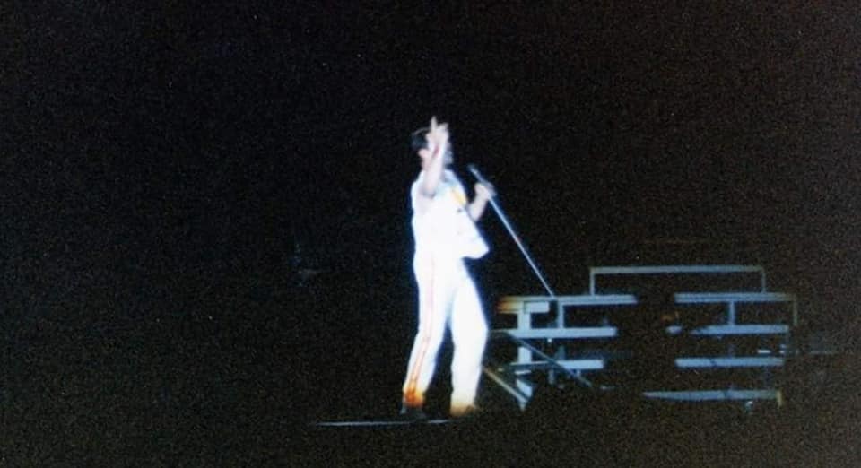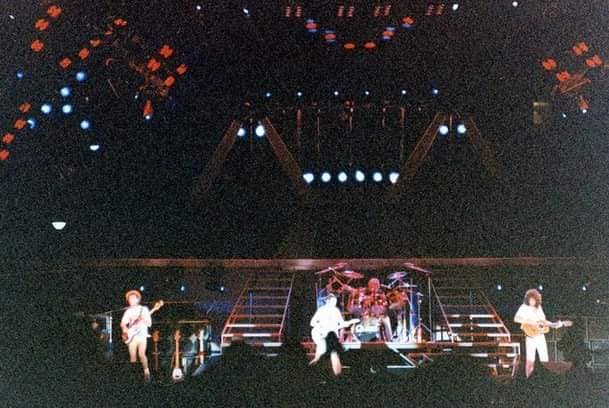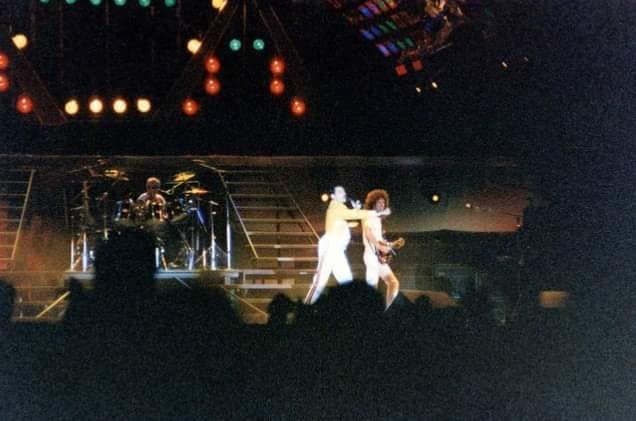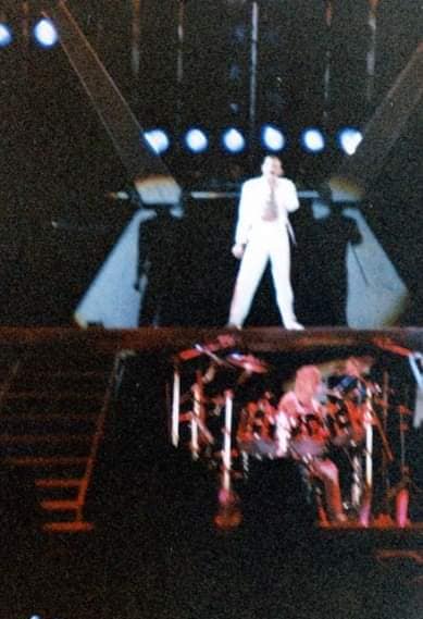 This was originally intended to be the final show of the tour, but the Knebworth Park show was added due to ticket demand after the two Wembley Stadium shows in July sold out so quickly. Near the end of Roger's fiery drum solo at the end of the impromptu, Mercury says "my oh my oh my." Brian then goes on for quite a while in his solo spot - over ten minutes, and likely his longest ever. The show was a late one, finishing around 1:30am. Here are a couple reviews (1, 2) of the show from Spanish newspapers, submitted by Alessio Rizzitelli. This third review (1, 2) submitted by Lourdes Monje Aguirre incorrectly claims Somebody To Love and even I Was Born To Love You were played. The pictures were submitted by Fabio Minero. |