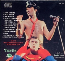Released in 1976 or 1977, this LP contained Golders Green '73, Rainbow '74 (just Keep Yourself Alive), and Hammersmith material. The latter actually filled in some gaps left in the Command Performance bootleg, so the nearly complete show was already available by this point. Big Spender and Jailhouse Rock run a bit slow, and overall sound worse than the rest of the tracks. |