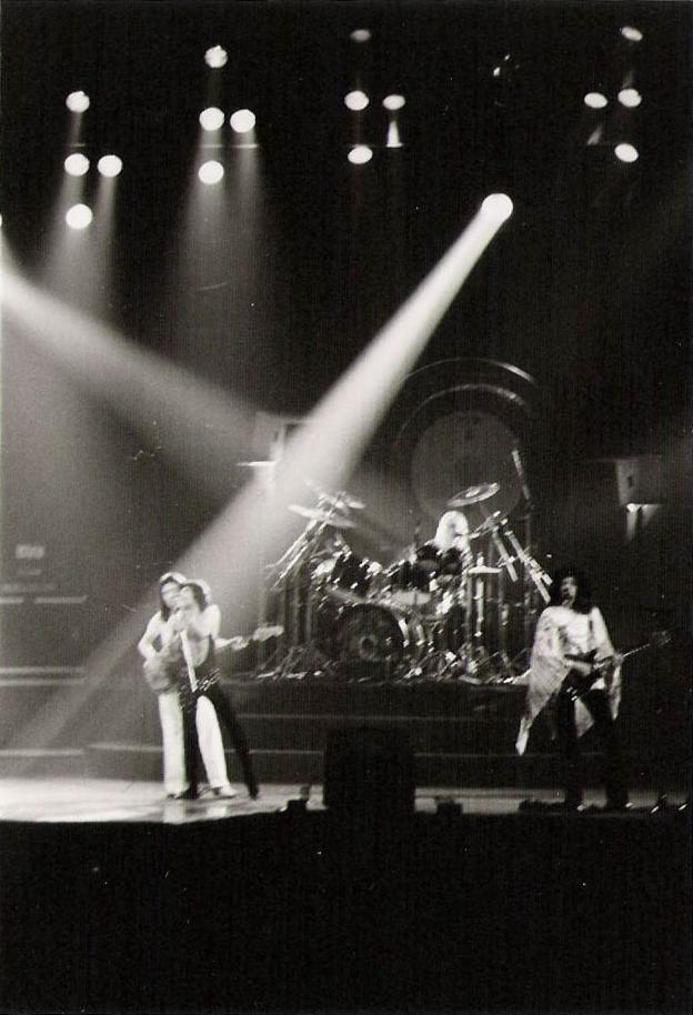 After the second song Freddie is pretty pleased that the band finally made it to Toronto, after their shows at Massey Hall in 1974 and '75 were cancelled due to his and Brian May's respective health issues. There's some gorgeous phrasing from Mercury throughout the show, like in White Queen and You Take My Breath Away. This is definitely one of his stronger shows in this period, nailing the vocal solo in Somebody To Love with precision and sustaining a lot of higher notes that he usually ducked out of. Musically it's a pretty spotless outing for the band as well. A fan recalls the sheer excitement of seeing Brian May's tech with his flashlight guiding him to the stage in the dark, and how powerful the explosion at the beginning of Tie Your Mother Down was. He adds that during Thin Lizzy's opening set, part way through Jailbreak, Phil Lynott kicked over one of Queen's monitors and said, "We'll let Freddie and the crew worry about that." Here are two reviews - from the February 2 Toronto Star and the February 3 Toronto Sun. Despite the Star reviewer's claim that there were sound issues, many people who saw the show insist the sound was excellent. The same Star writer also did this great piece on the band a few days before the show. The second set of pictures were taken by Erik Cartar. Pic 6 was taken during '39, pics 15 and 16 were taken during In The Lap Of The Gods...Revisited, pics 17 and 18 were taken during Now I'm Here (Freddie is seen throwing roses, with the thorns plucked out one by one by a member of the crew), and pics 19 and 20 were taken during Big Spender. Photos 24-26 were taken by Wayne Brauer, photo 27 is by Jerrold Karch, and the last set (taken incredibly from the grays!) is by Simon Crook. The backstage shots were taken by Michael Ochs. |