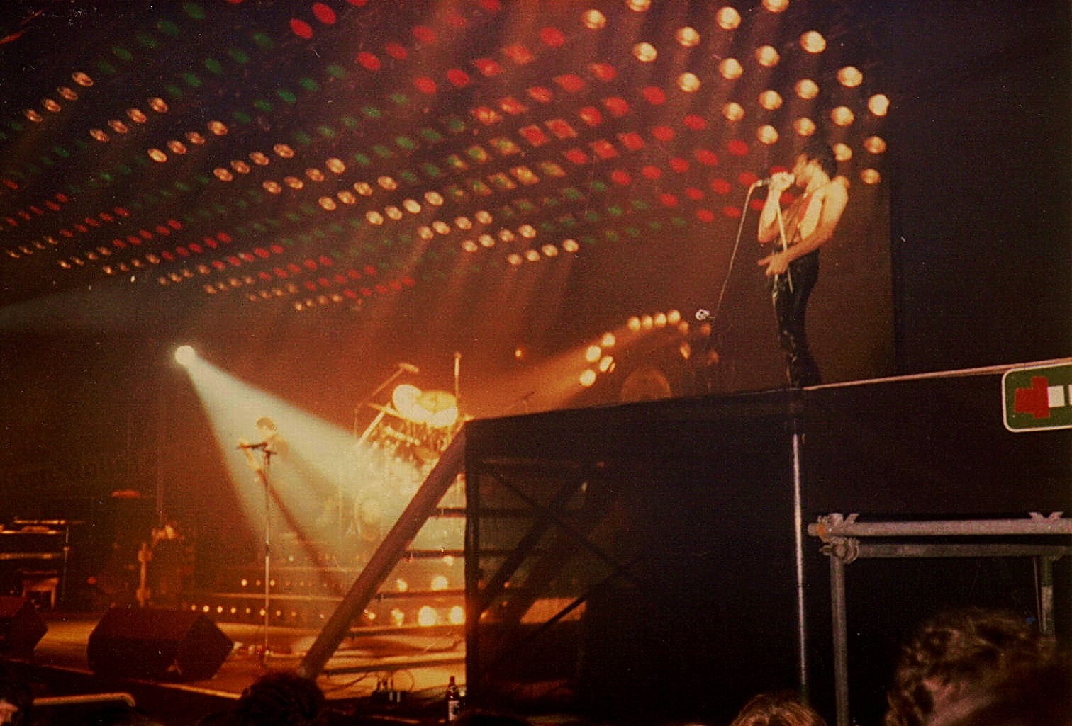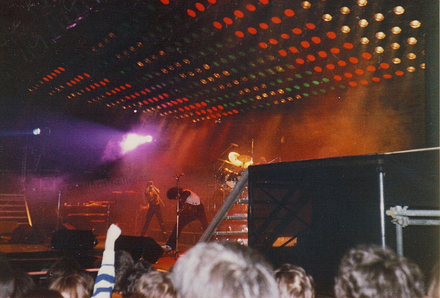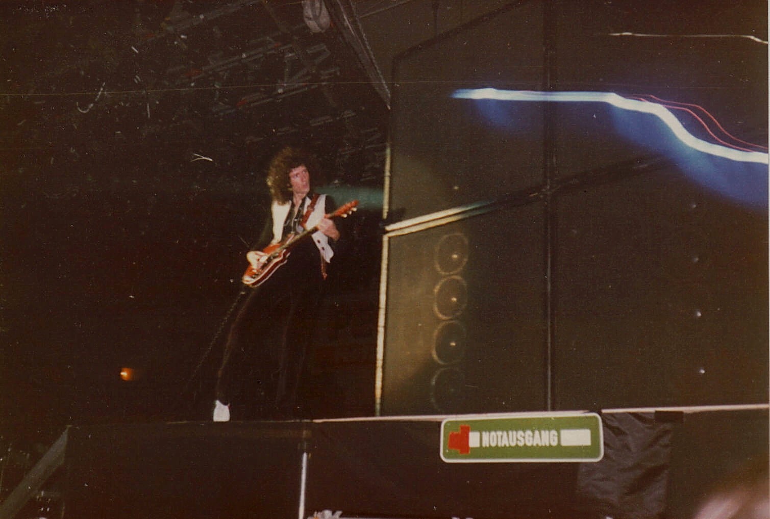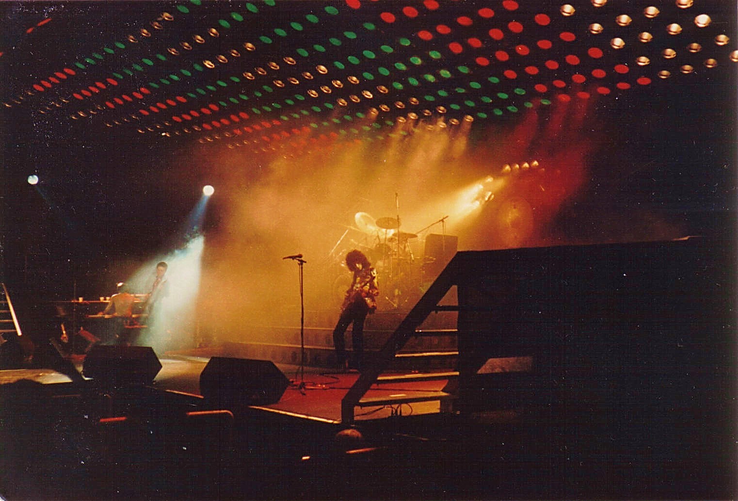 This is a pretty energetic show with many wonderful musical and vocal moments, and Freddie sounds relatively strong by early 1979 standards. Highlights of the show include If You Can't Beat Them, Now I'm Here, and Brighton Rock. Mercury attempts to introduce Now I'm Here, but an audience member interrupts him. "No, it's not Tie Your Mother Down. That comes later!" Before Love Of My Life, Freddie says: "We have a song right now that requires a very, very big choir. And that is you. So we're gonna give you the first few lines in this next song, and you can take it wherever you want." After the song, Brian formally introduces Roger and John back to the stage. "And on wondrous vocals, Mr. Freddie Mercury." Freddie forgets most of the words in the first chorus of It's Late. Later he introduces Bohemian Rhapsody from the piano, something he rarely did after the A Day At The Races tour. Brian gives a great performance as well, although his G-string is very out of tune on Sheer Heart Attack (but considering the nature of how the song is performed, it still works). And then at the final peak of the show, just before the final "Of the world" during We Are The Champions, he plays a completely wrong chord, hitting the 7sus4 chord in B instead of C. Here is a brief write-up about the show, referring to a record-setting audience. It also says, "Before the carnival there are a few rock concerts in the Sporthalle, starting off with sold-out Queen and Udo Lindenberg concerts. Uriah Heep and Status Quo sold thousands of tickets for their concerts as well." The first 29 pictures were taken by Wolfgang Trabitzsch (and later colour-corrected by Nino Trovato, along with pics 30 to 32). |