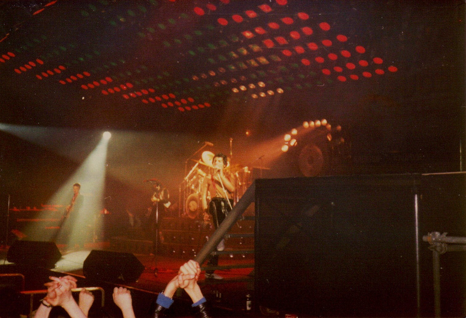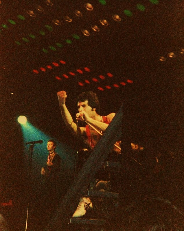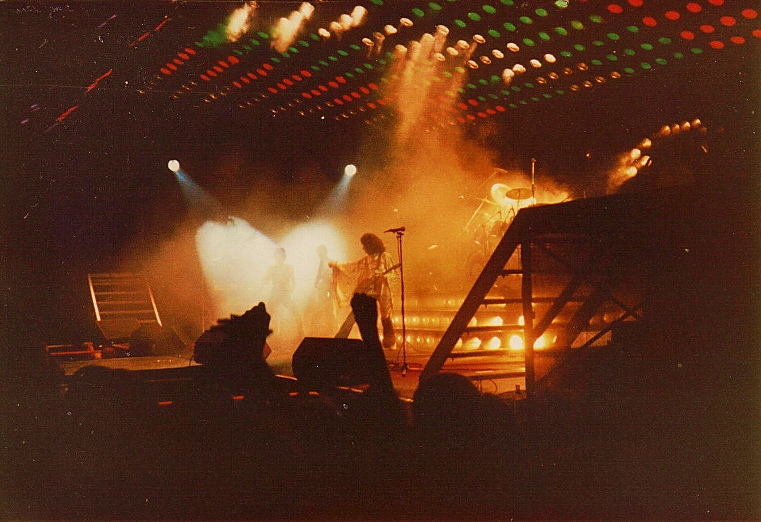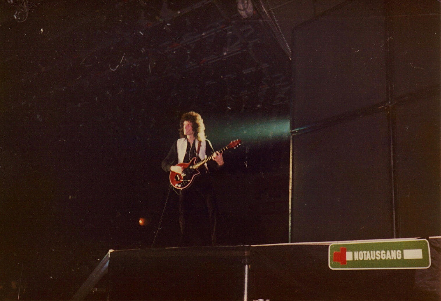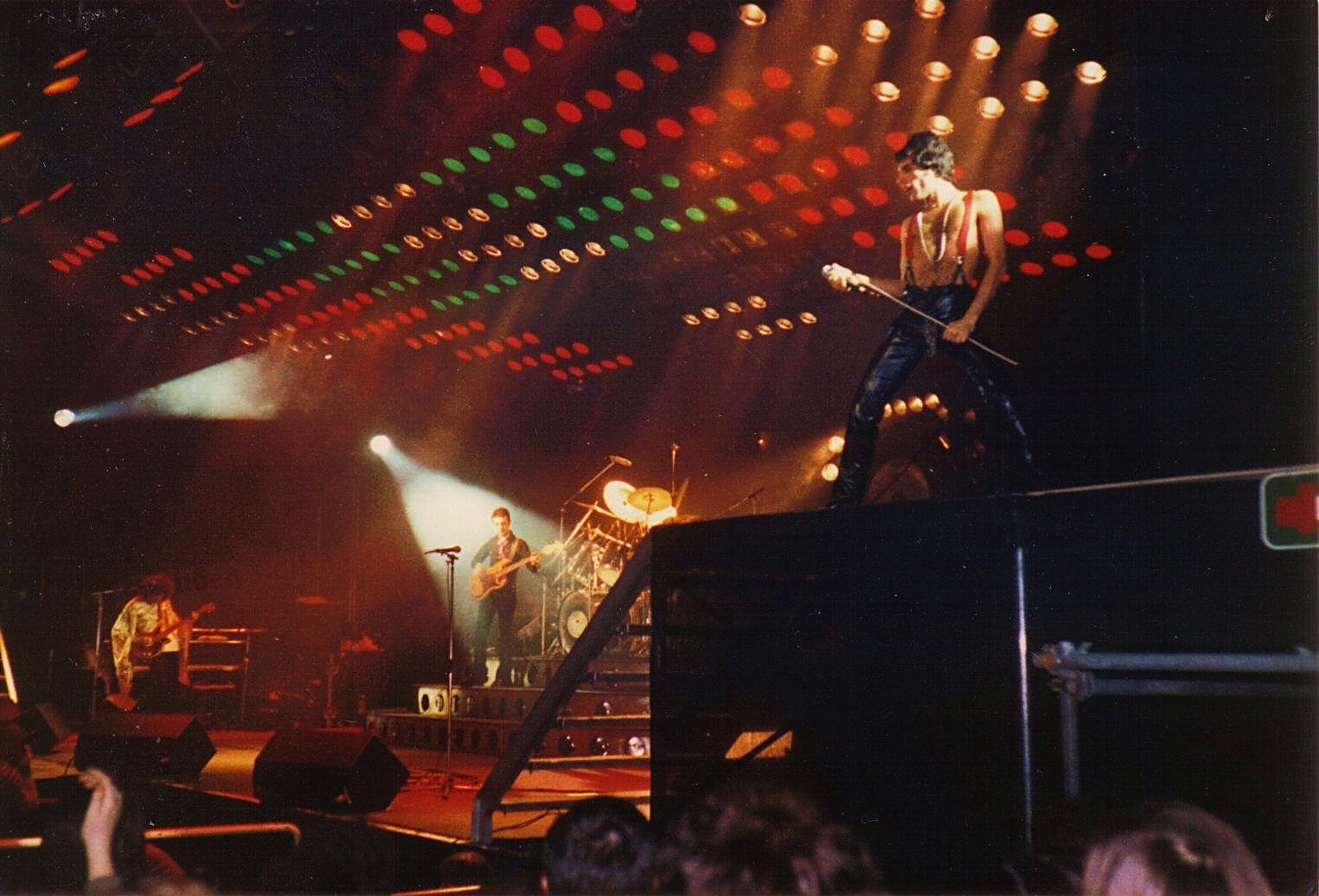 This is a pretty energetic show with many wonderful musical and vocal moments, and Freddie sounds relatively strong by early 1979 standards. Highlights of the show include If You Can't Beat Them, Now I'm Here, and Brighton Rock. Mercury attempts to introduce Now I'm Here, but an audience member interrupts him. "No, it's not Tie Your Mother Down. That comes later!" Before Love Of My Life, Freddie says: "We have a song right now that requires a very, very big choir. And that is you. So we're gonna give you the first few lines in this next song, and you can take it wherever you want." After the song, Brian formally introduces Roger and John back to the stage. "And on wondrous vocals, Mr. Freddie Mercury." Freddie forgets most of the words in the first chorus of It's Late. Later he introduces Bohemian Rhapsody from the piano, something he rarely did after the A Day At The Races tour. Brian gives a great performance as well, although his G-string is very out of tune on Sheer Heart Attack (but considering the nature of how the song is performed, it still works). And then at the final peak of the show, just before the final "Of the world" during We Are The Champions, he plays a completely wrong chord, hitting the 7sus4 chord in B instead of C. Here is a brief write-up about the show, referring to a record-setting audience. It also says, "Before the carnival there are a few rock concerts in the Sporthalle, starting off with sold-out Queen and Udo Lindenberg concerts. Uriah Heep and Status Quo sold thousands of tickets for their concerts as well." The first 29 pictures were taken by Wolfgang Trabitzsch (and later colour-corrected by Nino Trovato, along with pics 30 to 32). |