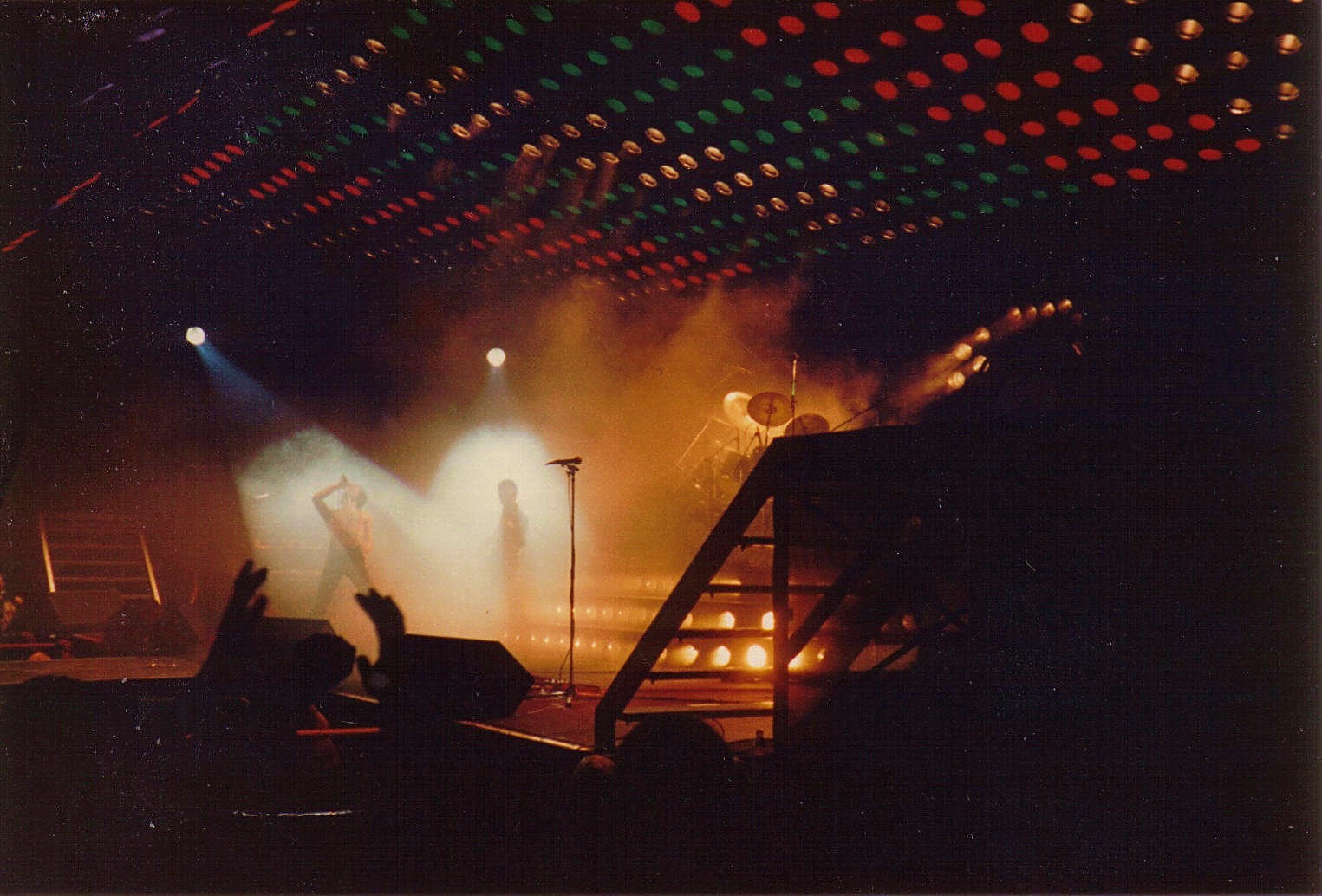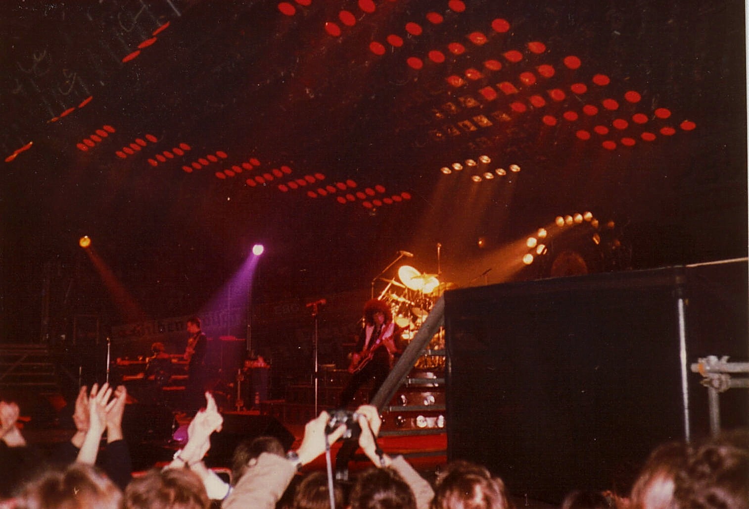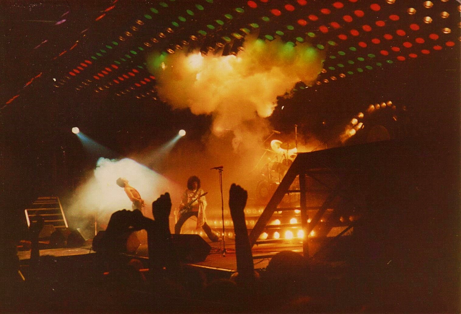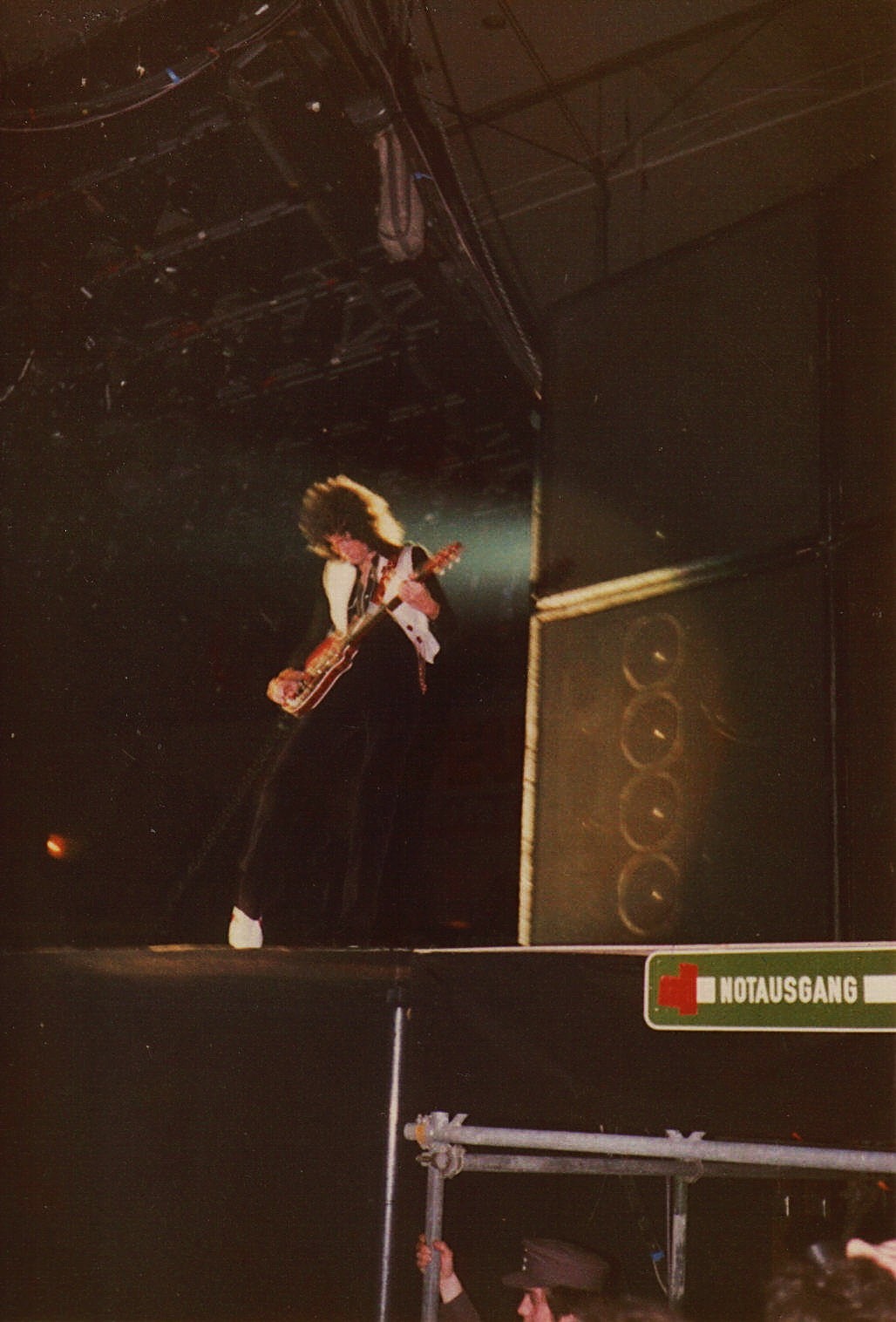 This is a pretty energetic show with many wonderful musical and vocal moments, and Freddie sounds relatively strong by early 1979 standards. Highlights of the show include If You Can't Beat Them, Now I'm Here, and Brighton Rock. Mercury attempts to introduce Now I'm Here, but an audience member interrupts him. "No, it's not Tie Your Mother Down. That comes later!" Before Love Of My Life, Freddie says: "We have a song right now that requires a very, very big choir. And that is you. So we're gonna give you the first few lines in this next song, and you can take it wherever you want." After the song, Brian formally introduces Roger and John back to the stage. "And on wondrous vocals, Mr. Freddie Mercury." Freddie forgets most of the words in the first chorus of It's Late. Later he introduces Bohemian Rhapsody from the piano, something he rarely did after the A Day At The Races tour. Brian gives a great performance as well, although his G-string is very out of tune on Sheer Heart Attack (but considering the nature of how the song is performed, it still works). And then at the final peak of the show, just before the final "Of the world" during We Are The Champions, he plays a completely wrong chord, hitting the 7sus4 chord in B instead of C. Here is a brief write-up about the show, referring to a record-setting audience. It also says, "Before the carnival there are a few rock concerts in the Sporthalle, starting off with sold-out Queen and Udo Lindenberg concerts. Uriah Heep and Status Quo sold thousands of tickets for their concerts as well." The first 29 pictures were taken by Wolfgang Trabitzsch (and later colour-corrected by Nino Trovato, along with pics 30 to 32). |