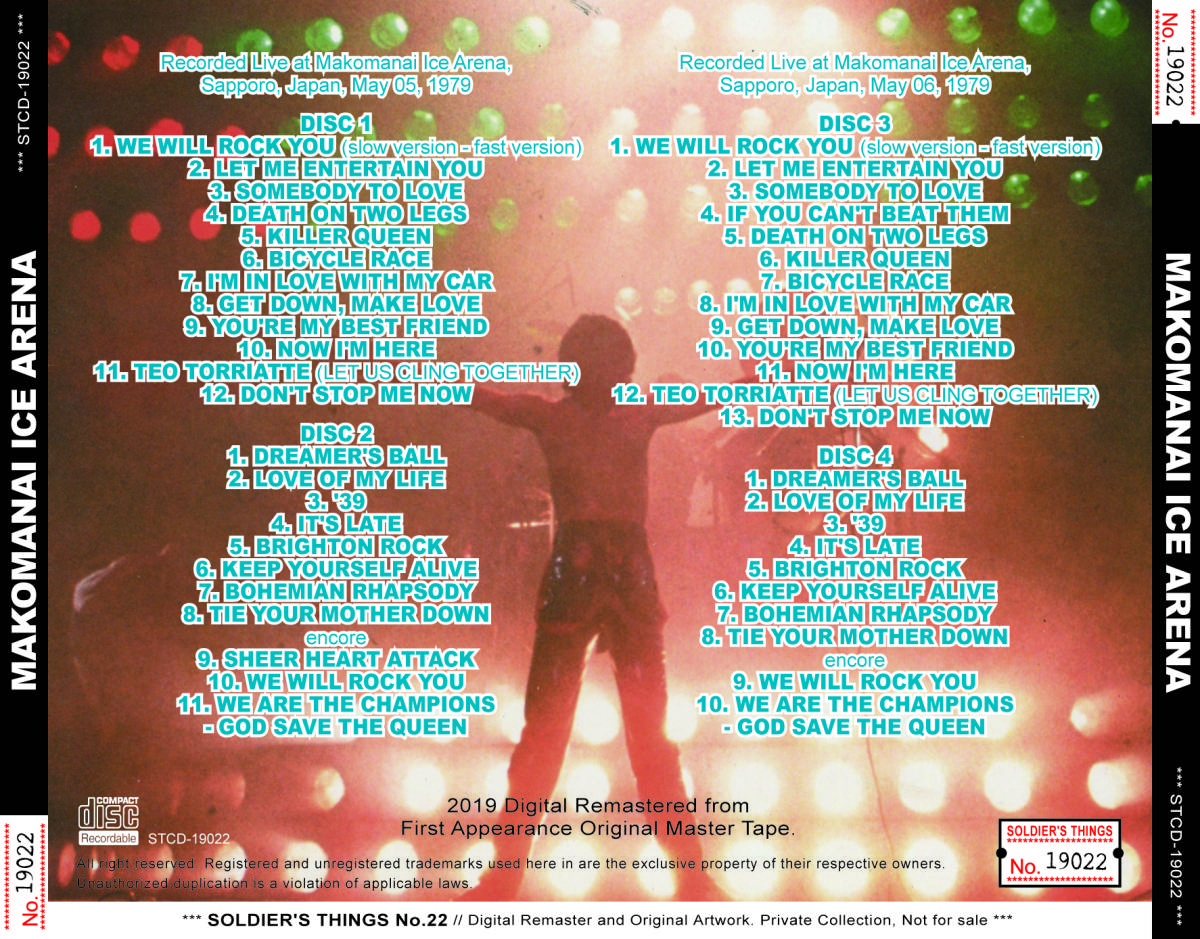 | Track listing: | We Will Rock You (slow/fast), Let Me Entertain You, Somebody To Love, Death On Two Legs, Killer Queen, Bicycle Race [cut], I'm In Love With My Car, Now I'm Here, Teo Torriatte, Don't Stop Me Now [cut] |