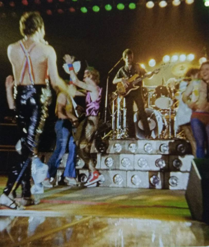 This is the final show of the Jazz tour. Freddie's vocal range is still lacking, but he makes up for any shortcomings with passion. He takes liberties throughout that are a joy to listen to. And even though it's the last show of their longest tour yet, the rest of the band are still a force to be reckoned with. Mercury decides to cut out the third verse of the fast We Will Rock You. The song would eventually be performed this way by 1980. "This is the last show on this tour, and it's really nice to be doing it in Sapporo. So we're gonna be working our buns off, and... please enjoy yourselves. This is a song written by John Deacon (he hesitates for a moment, but he ultimately never forgets who wrote the song) entitled If You Can't Beat Them, join 'em!" It is an excellent version, with Brian May delivering one of his many great guitar solos of the evening. Roger throws a nice flurry of tympani rolls into Freddie's piano intro to Death On Two Legs. Near the end of the medley, Brian decides to go with the neck-bridge out of phase pickup selection (the same setting he used for Stone Cold Crazy) for the You're My Best Friend solo, resulting in a very punchy sound. Freddie throws in a few lines from Liar into the extended Now I'm Here vocal exchange with the audience ("Mamma I'm gonna be your slave, all day long"). Without a doubt they knew every word of the albums, whether or not they spoke English to begin with. This Japanese audience is a very enthusiastic one, as Freddie notes after the song, "You're a rowdy lot tonight." At many points during the show, Freddie thanks various people for their hard work over the past 6+ months. After Teo Torriatte, when he recognizes tour manager Gerry Stickells and his group, in the background Roger says, "Geriatrics", which Freddie finds greatly amusing. A long version of Don't Stop Me Now follows, with an extended middle section including a lot of shouting out from Roger from behind the kit. Some crew members join Queen on stage dressed in the band's spare stage outfits, and dance along to the music (as seen in the photo above). After the song, Freddie says, "Yes, we'd like to thank the blue bells. The blue bells, the last number." There were plenty of inside jokes, no doubt. Before '39, Brian introduces their group co-ordinator Pete Brown to the stage. After welcoming John and Roger back, he refers to Freddie as "your friendly maraca salesman." Fat Bottomed Girls returns to the setlist for the last night's sake, replacing It's Late. Freddie's Brighton Rock introduction is one for the ages: "It's supper time right now, and John, Roger, and Brian are gonna do their stuff. This is... are we ready, girls?" Freddie does the Fun It reference one last time during the intro of Keep Yourself Alive. Like the last night in Paris, they play Jailhouse Rock in the encore - but here it leads straight into Sheer Heart Attack. Tonight marks the last time they'd play We Will Rock You at the beginning of the show with the stomp-stomp-clap on tape. These are also the final performances of Bicycle Race, Dreamer's Ball and the full Keep Yourself Alive. Brighton Rock would be dropped from the setlist as well, but it would be heard at least once on the Crazy tour. |