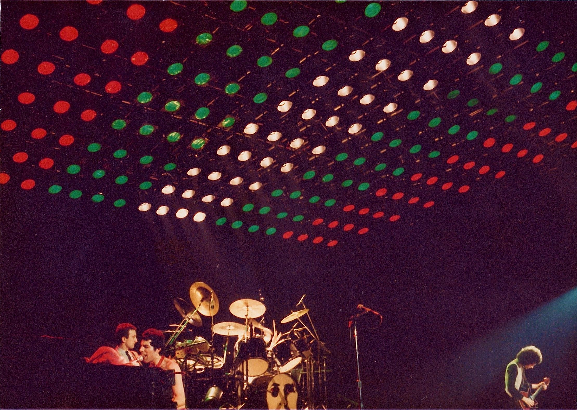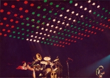 According to a fan who attended the second night, compared to the first night it was far from sold out. Another fan recalls how before Spread Your Wings, Freddie said that he "wanted all the boozers and piss heads Brighton is famous for to use their lungs and sing this." On the second night in Brighton the band played Liar and apparently even Brighton Rock, which had been dropped from the setlist on this tour. The same fan quoted above says Freddie pointed out how it wasn't in the set anymore, but "you fuckers wouldn't let us out of here if we didn't play this." It's the last documented performance of the full song. The ending of Brighton Rock would be heard after Brian's guitar solo through London '80, and again during the Works tour in 1984-85. Through 1981, Keep Yourself Alive would merge into Roger's tympani solo, and it would be resurrected for The Works tour as part of a medley of songs from the first three albums. The picture could be from either night, but it reveals Brian in a different outfit from the picture seen on the first night's page. |