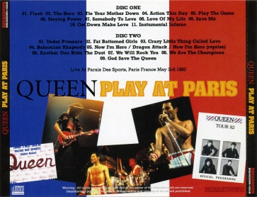| Track listing: | Flash (tape), The Hero, Tie Your Mother Down, Action This Day, Play The Game, Staying Power, Somebody To Love, Love Of My Life, Save Me, Get Down Make Love, guitar solo [cut], Under Pressure, Fat Bottomed Girls, Crazy Little Thing Called Love, Bohemian Rhapsody, Now I'm Here, Dragon Attack, Now I'm Here (reprise), Another One Bites The Dust, We Will Rock You, We Are The Champions, God Save The Queen |