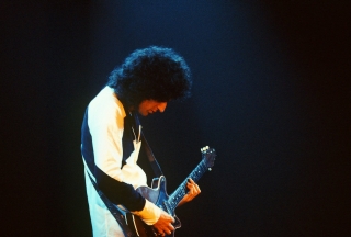 These pictures were taken by bookworm. Queen try out Sheer Heart Attack as the second number once again, as they did in Cologne. Freddie has a bit of trouble with Staying Power tonight, as it's such a demanding song to sing. Afterward he says, "Yeah, there's a bitch of a song to sing." He plays a couple chords on the piano to begin Somebody To Love, and adds, "This is another bitch." But he gives a wonderful rendition of the Aretha-inspired classic. Brian plays the decending half note arpeggios in his guitar solo similarly to what he did towards the end of the Live Killers version of Brighton Rock, but with a slight added rhythmic twist. |