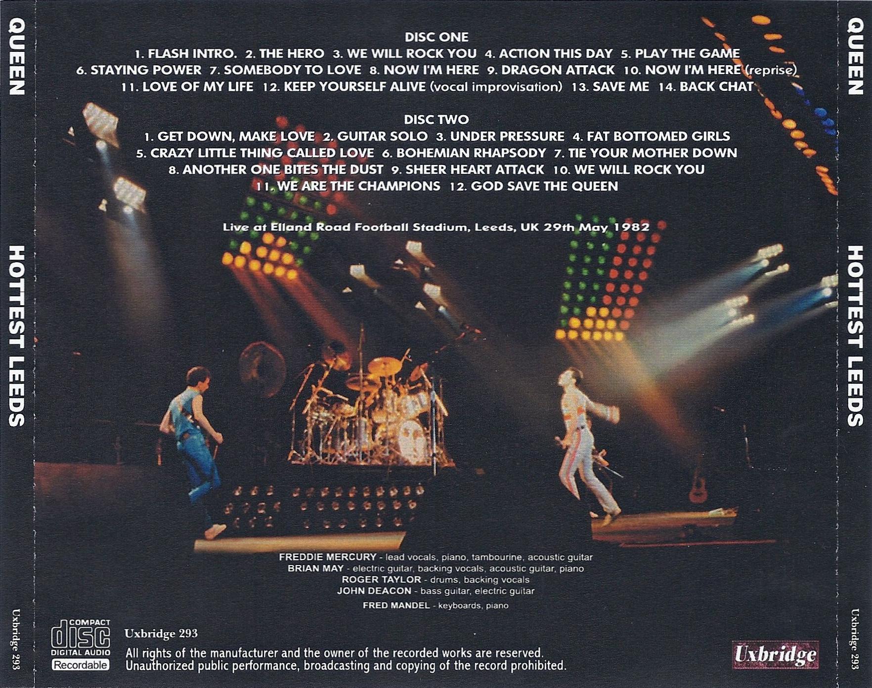 The original intention was to play this show at Old Trafford, the home of Manchester United Football Club. Despite it having been cleared by the council and police (and not to mention, tickets had already been printed), it was the local residents who somehow got the last vote, insisting that the volume of the sound would be disturbing. Residents of Leeds voiced similar complaints after it was announced that the show would be played at Elland Road, but it would go on regardless. There were reports that Queen had paid for residents to move out of their homes for the day, and perhaps this was part of the negotiations with the local authorities. This was unfamiliar territory for the people of Leeds - at the time this is the biggest show ever staged there. The band negotiated a later curfew with the police to ensure they could perform their full show (and with a full light show). A fan who attended the show vividly recalls the opening bands' sets, saying how The Teardrops Explodes got [lemonade] bottled by the crowd (frontman Julian Cope appeared very nervous throughout his band's set to begin with). Another fan says, "Cope picked one of the bottles up and started hitting himself with it and stretching his arms out saying he was an Argentinian bomber or something. It was during the Falklands war, remember." Some have come to interpret this reaction of Queen fans towards the post-punk opening act as a manifestation of their distaste for Queen's general departure from rock on the Hot Space album. Heart and Joan Jett And The Blackhearts, both hard rock acts, went down well. Right from the beginning, the band could feel like it was going to be top notch show due to the audience's involvement and enthusiasm. "Too much!" Freddie says to their singing in the fast version of We Will Rock You. After the song, he greets them. "Good evening, Leeds! Hey, it's really nice to be here. You're a wonderful-looking crowd, I'll tell you. You're a fucking amazing crowd, and you don't know what that means to a performer." Action This Day gets a lukewarm response like at most shows, but both the audience and band are truly on fire for the remainder of the evening, perhaps even more so than on the officially-released show from a week later with the title "Queen On Fire: Live At The Bowl." At one point Freddie was almost pulled into the crowd. As Roger plays the beginning Staying Power, Freddie says, "C'mon, get your funky hats on now, huh?" Tonight the first chorus is "You and me we got... fucking power." This show is a fine example of Freddie's stellar vocal control, especially in Staying Power and Somebody To Love. After the former, he said it was a "fucking motherfucker to sing, I tell you." Brian, before Love Of My Life: "I wanna tell you, it means a lot to us to come back up here after eight years. We won't wait this long before we come back to Leeds, okay?" But they never would. Before Save Me, Freddie does a brief improv of Keep Yourself Alive with the audience. Brian then noodles on the piano as he usually does, and you can hear the disappointment of a few audience members as it sinks in that the band aren't going to perform the debut album classic. Freddie would initiate a similar improv in Nagoya a few months later. A superb version of Back Chat is played tonight, after being absent at the past few shows. Brian gives his absolute all towards the end, bringing it such energy almost to the point of it becoming a completely different song. Freddie has a slight moment of honesty before Fat Bottomed Girls: "This next song reminds me of all the dirty things I've done in my life, you know. I'm not gonna explain all the things, but you know what I mean. The bigger the tit, the better it is, I kind of think." At the end of the show, he tells the audience how they were "Absolutely fabulous. We shall not forget you!" Queen waited until 10pm to go on, as they wanted their lighting show to be at its most effective, but this resulted in a fine from the authorities. They wouldn't be so lucky in Milton Keynes a week later, as seen on the video footage. Despite the various rumours told over the years, the Leeds show was not filmed. Years later Brian May recalled this to be one of his favourite shows, and said he wished they had recorded and filmed this show instead of Milton Keynes. Here are two reviews of the concert (the second one is a pretty extensive article from Record Mirror, but a great read): 1 2a 2b The first pic was submitted by Fabio Minero, and the last two are from Alessio Rizzitelli. Here are a few pro pics from this show: 1 2 3 4 5 More pictures from this show can be found at http://www.repfoto.com. You have to register as a user. Various bootleg 45s (such as this one) were released in the early 90s containing interviews with Brian and Roger done on the afternoon before the Leeds show. Queen reportedly rehearsed the Hot Space ballad "Las Palabras de Amor" before this show, but it was never performed live. |