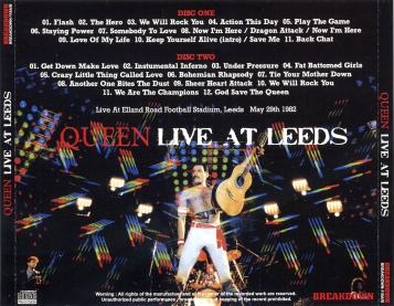 | Track listing: | Flash (tape), The Hero, We Will Rock You (fast), Action This Day, Play The Game, Staying Power, Somebody To Love [cut], Now I'm Here, Dragon Attack, Now I'm Here (reprise), Love Of My Life, Keep Yourself Alive (improv), Save Me, Back Chat, guitar solo [cut], drum solo, Under Pressure, Fat Bottomed Girls, Crazy Little Thing Called Love, Bohemian Rhapsody, Tie Your Mother Down [cut], Another One Bites The Dust [cut], Sheer Heart Attack, We Will Rock You [cut], We Are The Champions, God Save The Queen |