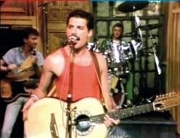 Queen's last US performance was an appearance on Saturday Night Live. They played Crazy Little Thing Called Love and Under Pressure between skits. The former was officially released in 2004 as part of a DVD package commemorating 25 years of SNL. Since it was the first episode of Saturday Night Live of the autumn TV season, the aim was to re-establish the band's popularity for a large TV audience after the mediocre public response to Hot Space. But they did not come off as overly impressive, since Freddie's performance was not up to par. Apparently he had a fight with his boyfriend the whole night before (the same guy he fought with the day before the Milton Keynes show). The screaming match left him in very poor voice - perhaps the worst it ever sounded. According to an early tour itinerary, a show in Hawaii was initially planned for September 26. Perhaps they discarded the idea in favour of performing on national television instead. The third picture was submitted by Fabio Minero. |