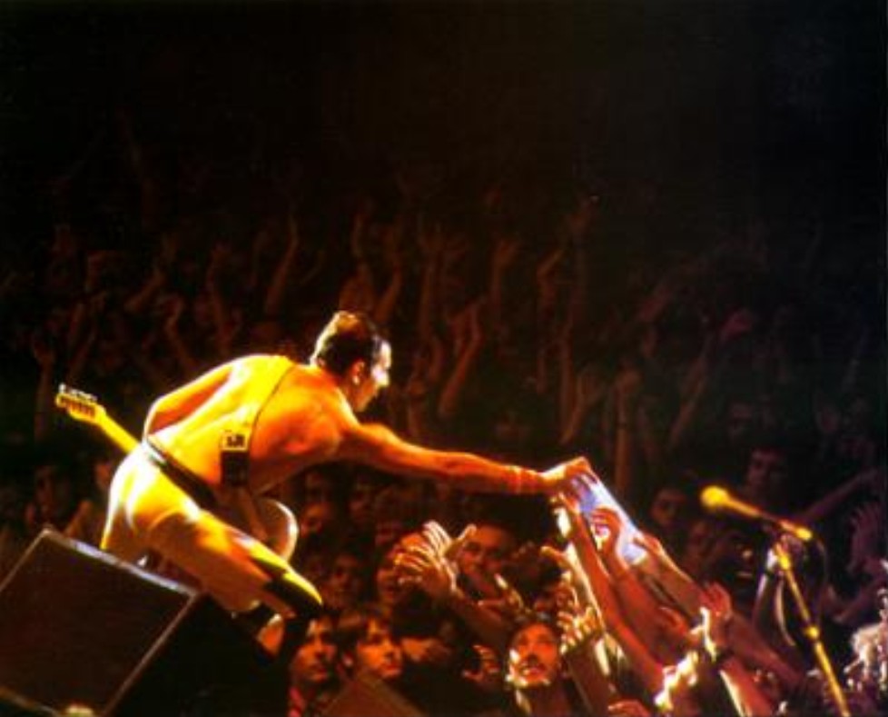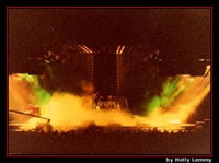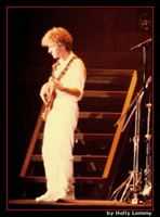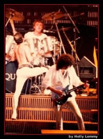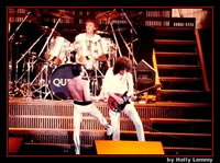 Tear It Up sounds very close to the record version tonight. After the second song, Freddie says, "Hello again, Brussels!" As this flyer indicates, this second night was added due to ticket demand, but they weren't able to book the venue for August 25. Freddie is experimenting furthermore with falsetto vocals towards the end of the tour, lending some neat sounds to Under Pressure and the improv after Dragon Attack tonight. It's well worth noting that this version of Now I'm Here is a very edgy one! "C'mon, let's do a jam", suggests Freddie before Stone Cold Crazy. The band seem to have a great bit of fun for a minute before starting the song. With his voice weakening, Freddie struggles a great deal with the high notes in Radio Ga Ga and I Want To Break Free - although his delivery of the bridge of the latter is soulful and expressive, followed by a great solo from Brian. The first set of pictures were taken by Helly Lemmy - although some may be from the August show (the photographer unfortunately can't remember which are which). Thanks to Raf Foubert for tracking them down. The last photo set was taken by Frederick Moulaert. |