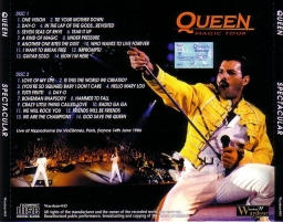| Track listing: | One Vision, Tie Your Mother Down, In The Lap Of The Gods...Revisited, Seven Seas Of Rhye, Tear It Up, A Kind Of Magic, Under Pressure, Another One Bites The Dust [cut], Who Wants To Live Forever, I Want To Break Free, impromptu, guitar solo, Now I'm Here, Love Of My Life, Is This The World We Created?, (You're So Square) Baby I Don't Care, Hello Mary Lou, Tutti Frutti, Bohemian Rhapsody, Hammer To Fall, Crazy Little Thing Called Love, Radio Ga Ga, We Will Rock You, Friends Will Be Friends, We Are The Champions, God Save The Queen |