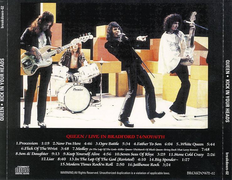 Procession, Now I'm Here, Ogre Battle, Father To Son, White Queen, Flick Of The Wrist, In The Lap Of The Gods, Killer Queen, The March Of The Black Queen, Bring Back That Leroy Brown, Son And Daughter [cut], Keep Yourself Alive, Seven Seas Of Rhye, Stone Cold Crazy, Liar, In The Lap Of The Gods...Revisited, Big Spender, Modern Times Rock 'n' Roll, Jailhouse Rock |
