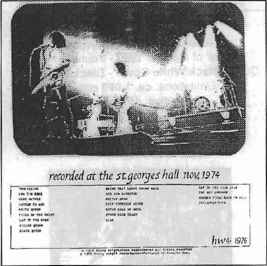 | Lineage: | "Live At The St. Georges Hall, 1974" LP |