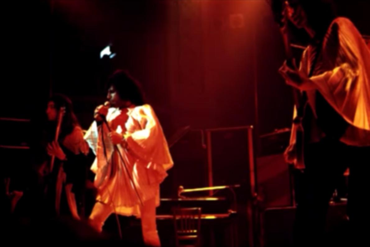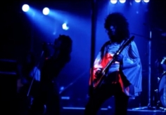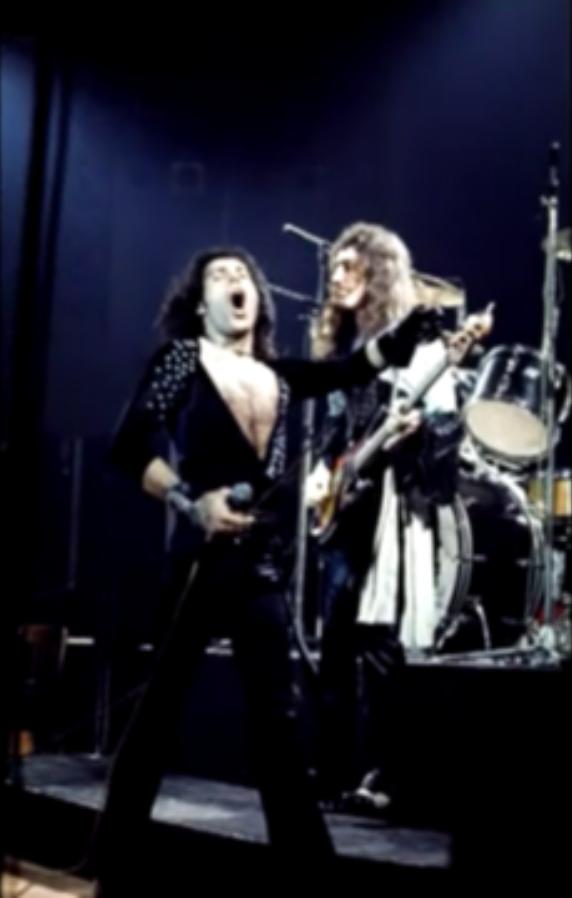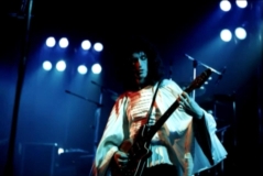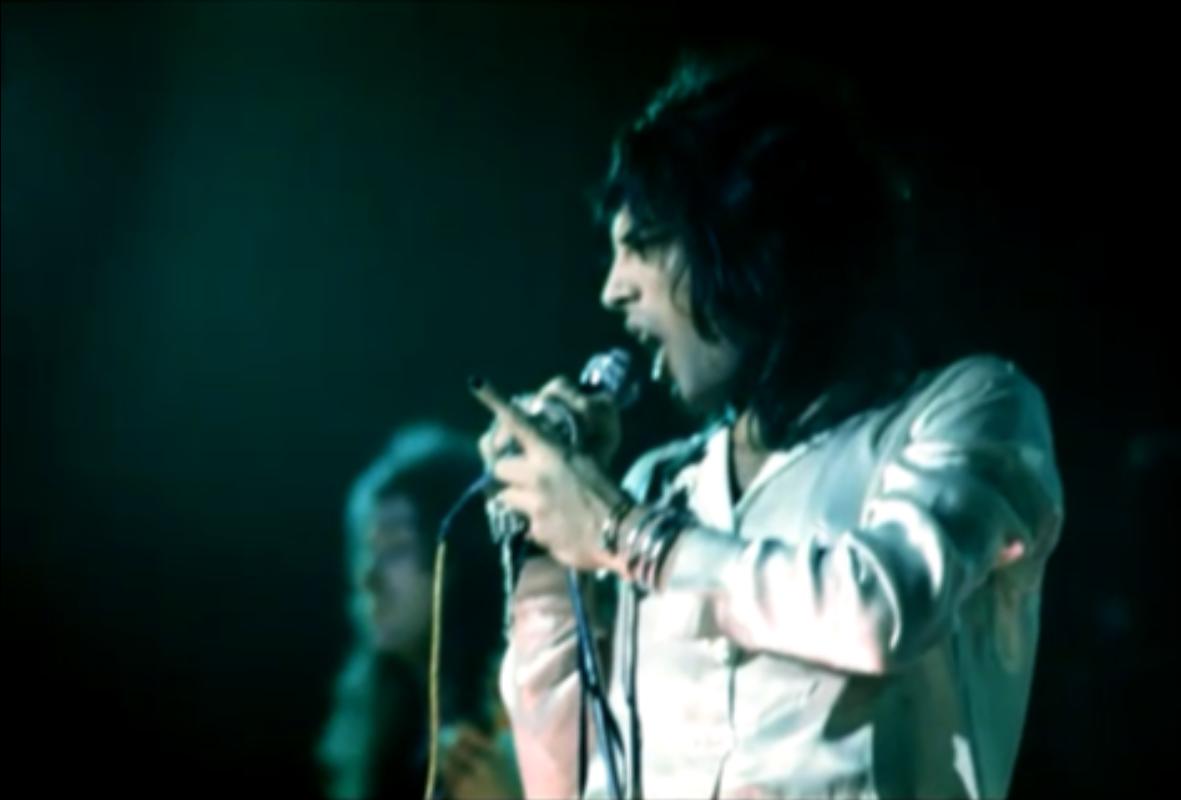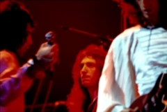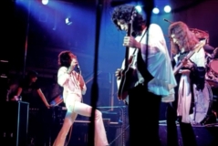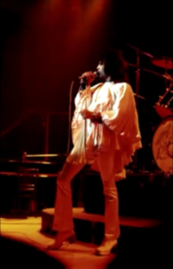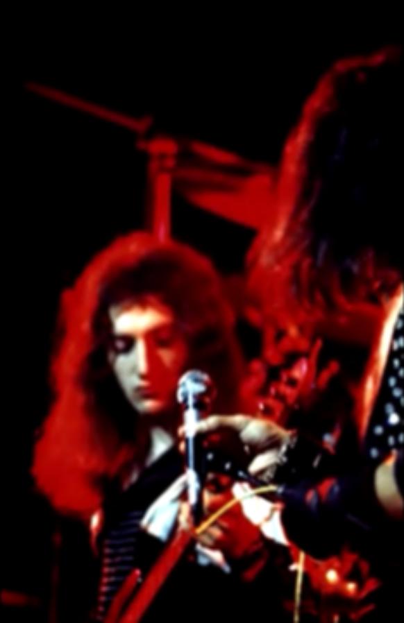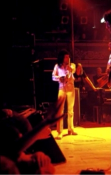Freddie, after Flick Of The Wrist: "We'd like to do something totally new for you right now. It's a sort of a medley. Three of the tracks are on our new album released tomorrow [ed. actually the day after tomorrow, November 8], Sheer Heart Attack." He gets no response. "You've heard of Sheer Heart Attack! It's our new album out tomorrow." He receives a somewhat forced response. Freddie sings aggressively and confidently tonight, and noteworthy is his delivery of the segment of The March Of The Black Queen. He introduces Keep Yourself Alive as a piece that "was written by Brian May when he was a teenager." There was often hyperbole in their stage banter in the early days, but this nevertheless raises an eyebrow as to how early the song may have been composed. Brian, before the last song: "This is from the new album. It's called In The Lap Of The Gods Revisited, and we would like you to sing along." That's a rather tall order, as the audience has never heard the song before! Its pairing in the setlist with Liar would last through the end of the North American 'A Day At The Races' tour. The excellent pictures were first seen on YouTube. Note that Freddie doesn't have a piano bench - he's sitting on an ordinary chair! |
