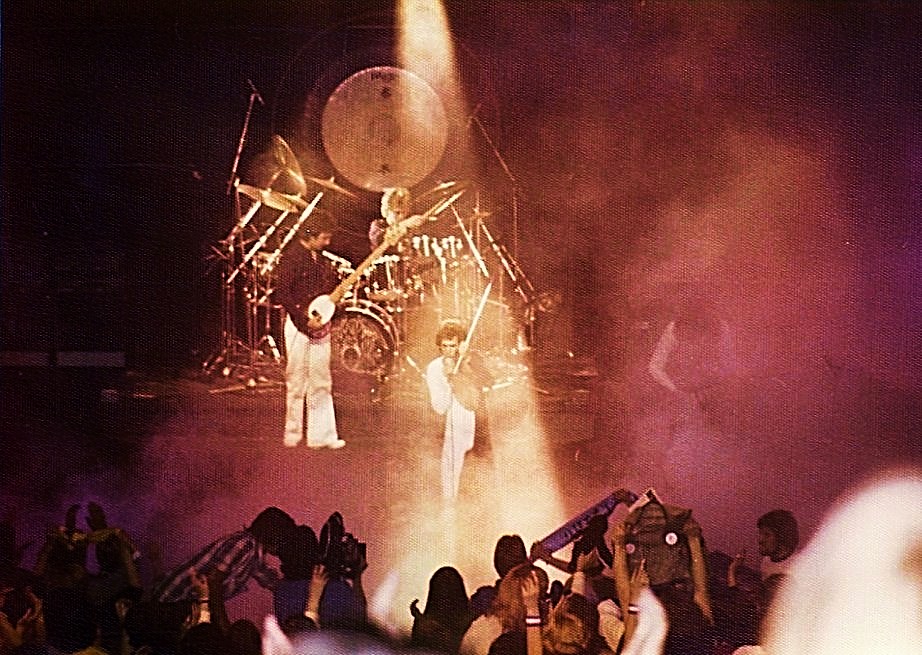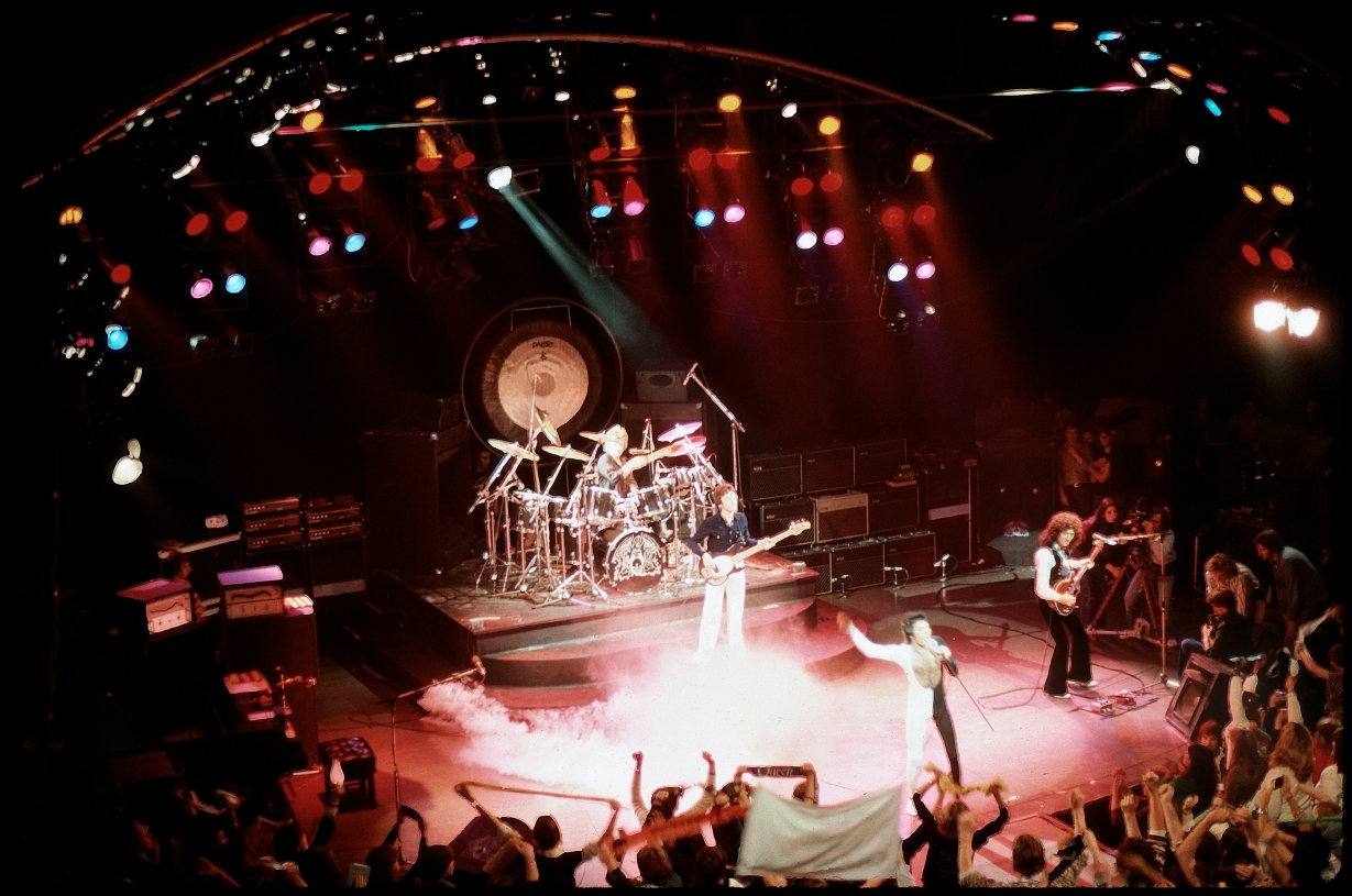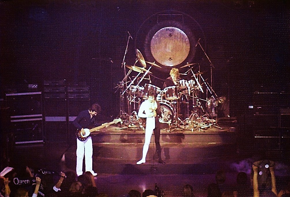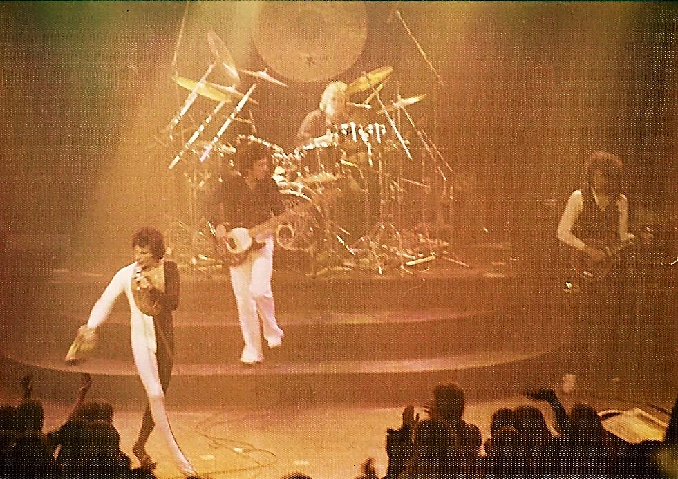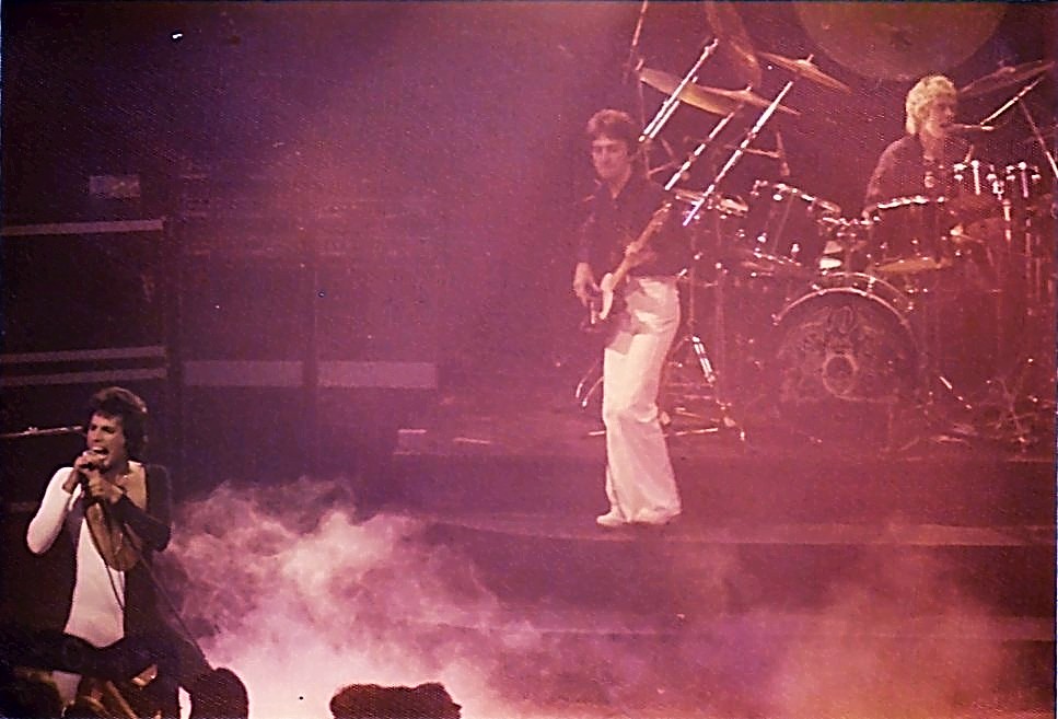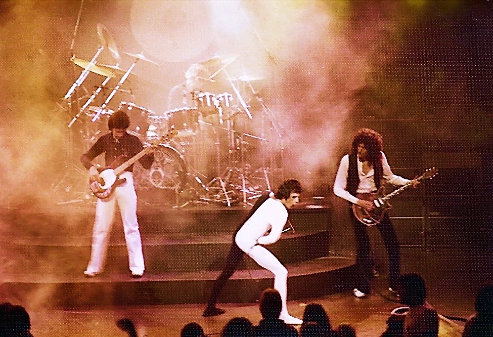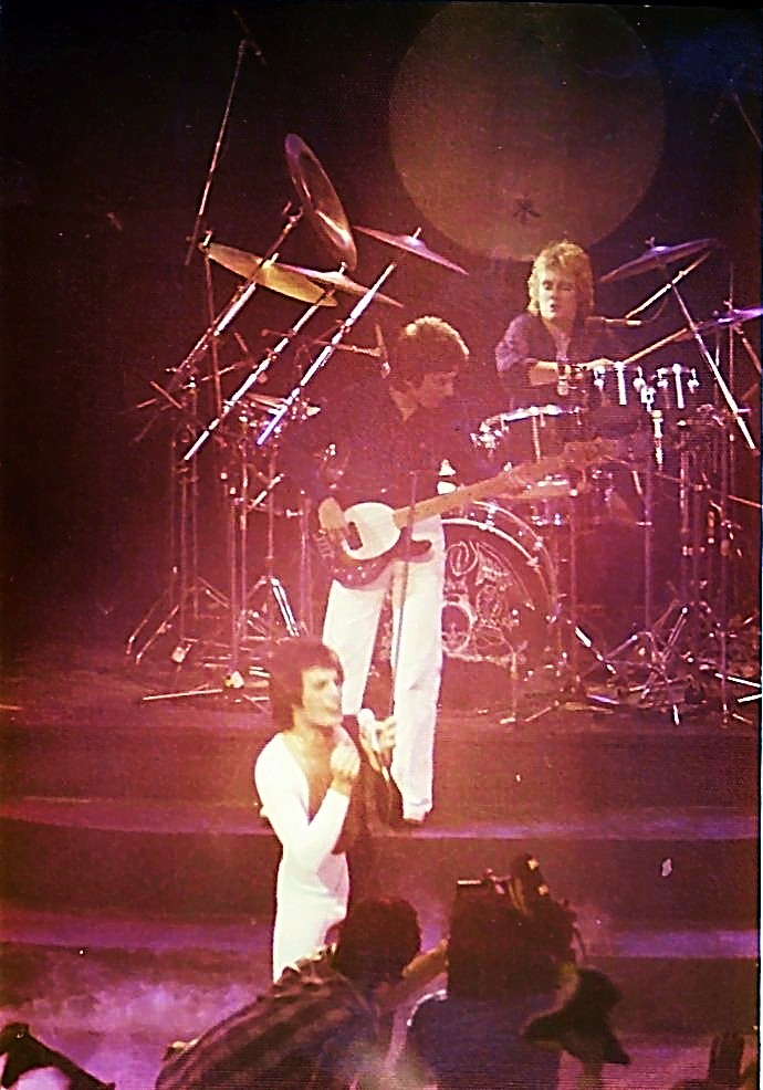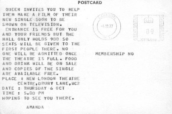 After doing the video shoot for We Are The Champions with members of the fan club in the audience, the band played an unexpected set afterward. The event was MC'd by Bob Harris, who announces to the fans before the video shoot that the band will play a special set just for them after a few takes of Champions. The fans are excited beyond belief by this proclamation, as it is a complete surprise to them. Between takes, Bob says there are extra cameras present to film a Queen documentary to be seen around Christmas or in the new year, but the documentary would never make it past the final editing stage. 1977 was a year of transition for Queen, and this unique live set gives a very telling glimpse of where the band are heading. Sitting at the piano before Somebody To Love, Freddie says, "I must say, this is more interesting than doing Earls Court, I think," much to the delight of the few hundred on hand (most of whom probably attended the Earls Court shows!). Brian messes up the queue back into the song after Freddie's vocal solo and remarks afterwards that it was "A little rusty there, I think." Freddie then says, "It's right into the microphone," perhaps indicating that shouldn't have been said out loud. He quickly changes the subject and asks what the audience would like to hear next. Amongst the shouts are Liar, Great King Rat, Stone Cold Crazy, even the non-album track Hangman - and Freddie saying with a chuckle, "We've done We Are The Champions!" The loose and experimental version of White Man / The Prophet's Song sounds much more like the middle section of (the not-yet-released) Get Down Make Love, because it's Brian's guitar that has the harmonization effects rather than Freddie's voice. This is the first time Brian would use the EBow on stage. After a superb version of Liar, the band play the first half of Bohemian Rhapsody. After May's guitar solo, he launches right into Now I'm Here since backing tapes aren't being used at this show. This is notably the first time the high guitar parts aren't heard after "I'm just a" on playback (until now the sample from the album was triggered by the front of house sound engineer). Overall the band are in fine form, and they are clearly happy to give the fan club members a great set. Also worth noting is that this is undoubtedly the greatest live version of See What A Fool I've Been. Freddie sings it passionately and aggressively, a complete 180 from the campy delivery of the studio version. His voice is much more accomplished, having blossomed greatly in the time since they'd regularly played the song. This would turn out to be the final performance of the Seven Seas Of Rhye B-side. In a radio interview done in Argentina in 1981, Roger Taylor reflected that Freddie had "improved by leaps and bounds," calling the early years of Queen "an incredible transition." This show reveals that transformation taking place in real time. The first pic is the official invitation for fan club members to attend the event. Pics 1 through 5 were taken by Paul Holmes, who also scanned the Winter '77 fan club magazine pic. Pics 6 through 12 were taken by David King, and pic 13 was taken by Gillian Parry. For years it has been rumoured that video footage of the live set exists, but it almost certainly wasn't filmed. The black and white footage of Jailhouse Rock in the American Dream documentary in the News Of The World box set is from Houston. |