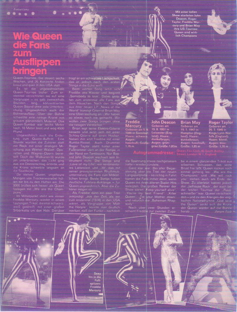 The second row of photos are from a 1978 German magazine. This piece in Bravo primarily focused on the Portland show, so the photos may well be from this night.