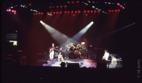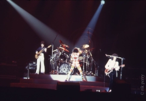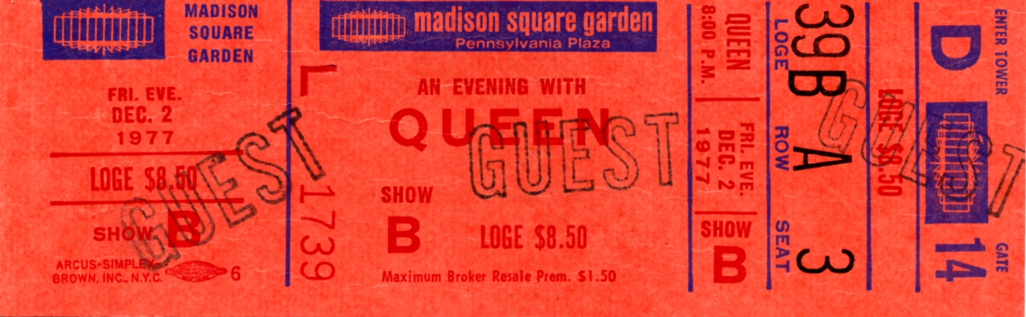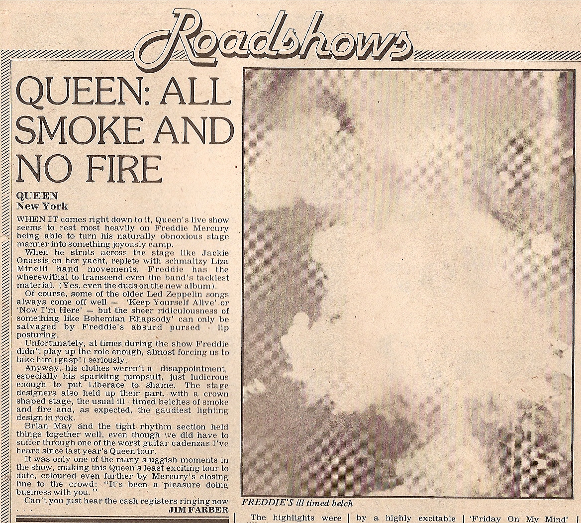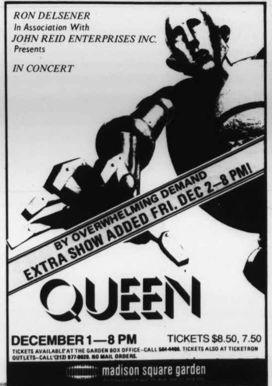 The second night was added in the second week of November, as the first night sold out very quickly. Freddie, after the first song: "Thank you and good evening everybody! Are you ready to rock and roll with Queen? Yes, it was a really good show last night. Thank you for giving us such a beautiful welcome. Thank you, New York. This is Brighton Rock." Before the medley, he takes a sip of champagne. "Thank you, ladies and gentlemen. While I take my medicine, we'd like to do something that we did last night." He then introduces the medley, and adds, "we hate calling it a medley, anyway. This is something a bit better than that." Freddie responds to an audience member after the medley. "What do you want? What's your request? Flick Of the Wrist? You got it." This definitely isn't the case. However, they do have a surprise in store for anyone who wasn't at the Garden last night. Intending to give a different show on the second night, Queen omit It's Late (which seems to be dropped until the last night of the tour at the L.A. Forum), Spread Your Wings, and My Melancholy Blues from the set (oddly dropping three new songs when trying to promote their latest album), but they do revive something they dropped from the setlist on the last US tour. He continues, "Okay, on with the show. We'd like to take you back to the very first album of ours, for all you fanatics. We'd like to do a couple numbers from that, and to start off with a song written by Brian May. This is called Doing All Right." The song is heard on stage seemingly for the last time. A stellar version of Liar follows, and Keep Yourself Alive is done later in the show, as always. But generally Queen's first two albums would feature less often in the show from now onward. Before White Man, Freddie says: "This next song is a real bitch to sing. It really requires a lot of my voice, but we're gonna do it anyway, because I have masochistic pleasure in doing it for you, my little darlings." During the Jailhouse Rock medley, they cover Elton John's "Saturday Night's Alright For Fighting" much to the delight of the audience. "Thank you, god bless you; it was a pleasure doing business with you tonight," declares Freddie at the end of the show. Here's a pretty negative review of the show. And to counter it, a fan's recollection from 2019. The second and third photo sets were taken by Rik Perry and Robert Miyares respectively. The last two shots were submitted by Juan Guarino (and cleaned up by Rudolf Griva), which could be from either night at the Garden. Here are a few more photos from this gig by Joe Gliozzo - they are fabulous shots. |