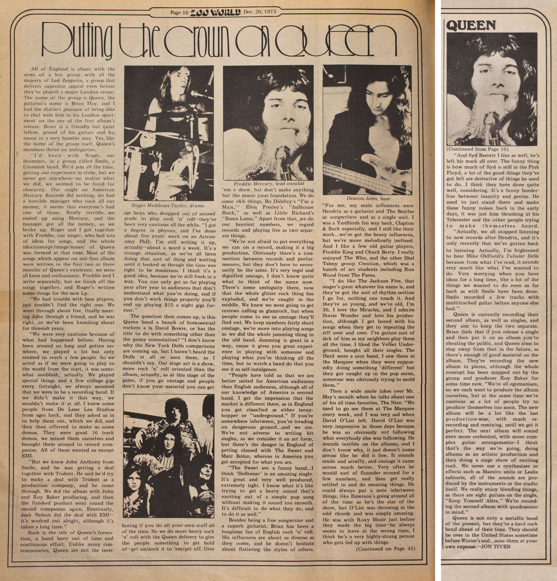 For many years it was thought the recording existed only through Keep Yourself Alive. The taper shared the complete recording online in 2006 after realizing it hadn't circulated in full. His master copy didn't completely survive over the years, but fortunately a copy was made back in the day. The second disc is from the master, so it sounds a tad better. Before Spread Your Wings, the taper and his friend can be heard talking. "Did you rewind it as much as you can?" |