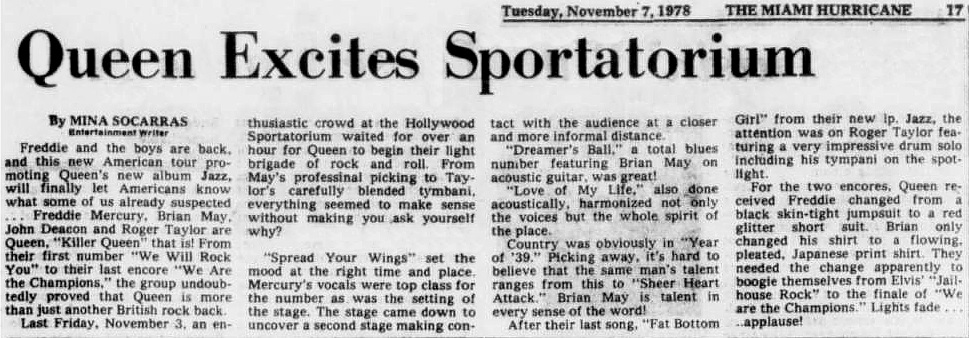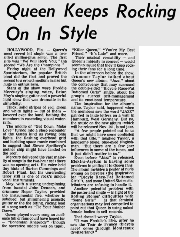 | Presumed setlist: | We Will Rock You (fast), If You Can't Beat Them, Somebody To Love, Death On Two Legs, Killer Queen, Bicycle Race, I'm In Love With My Car, Get Down Make Love, You're My Best Friend, Now I'm Here, Spread Your Wings, Dreamer's Ball, Love Of My Life, '39, It's Late, Brighton Rock, Fat Bottomed Girls, Sheer Heart Attack, Keep Yourself Alive, Bohemian Rhapsody, Tie Your Mother Down, Jailhouse Rock, We Will Rock You, We Are The Champions, God Save The Queen |