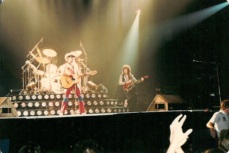 The second set of photos was submitted by Marknow, and the fourth set was taken by Worth Chollar (some of the shots are a bit out of focus, but others are downright phenomenal). The promo video for Another One Bites The Dust (directed by Daniella Green) is filmed before the show. |