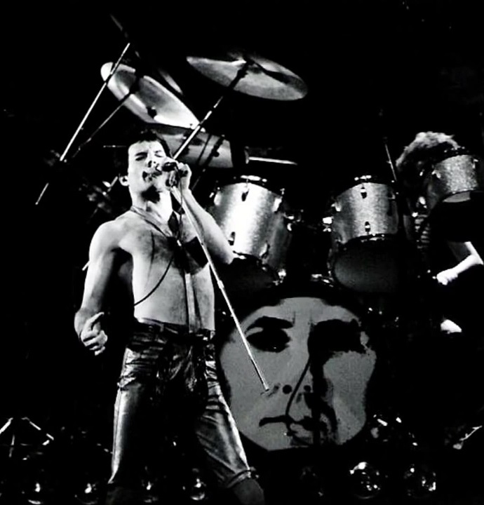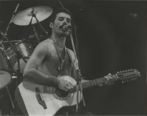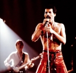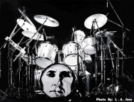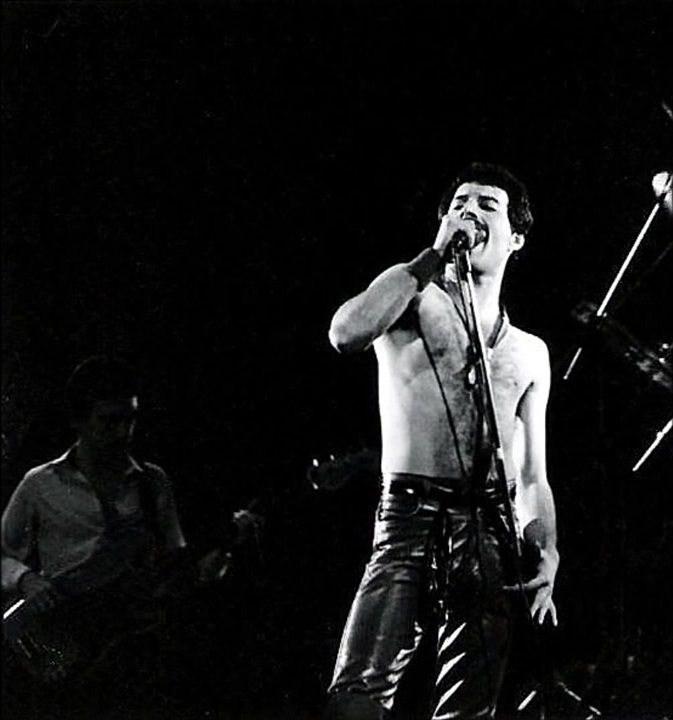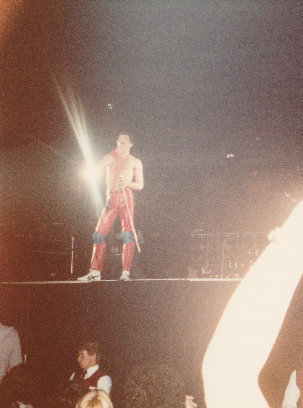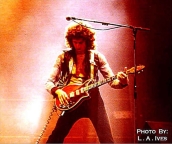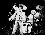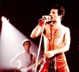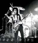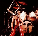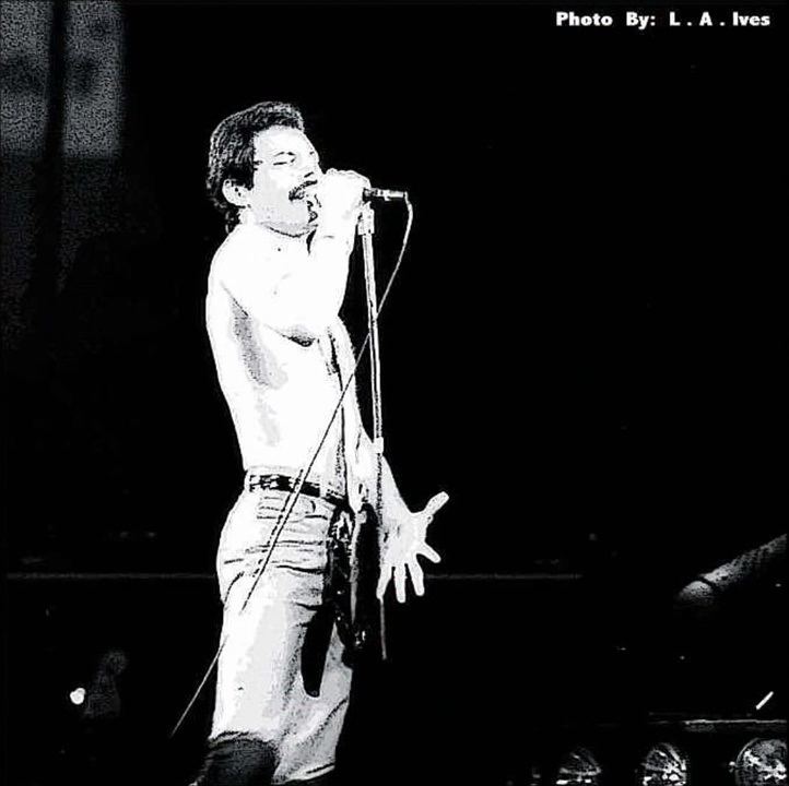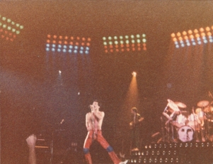 Freddie now emerges for the encore of We Will Rock You on the shoulders of a crew member dressed as Darth Vader. After doing the gag every night for a few months, the band were forced to retire it after learning that Star Wars creator George Lucas was planning to threaten legal action against Queen (what a way to respond to free publicity!). The third set of photos was taken by L.A. Ives, and the fourth by John Guarino. More pics from this show can be found at http://www.rockpicsalive.com. |