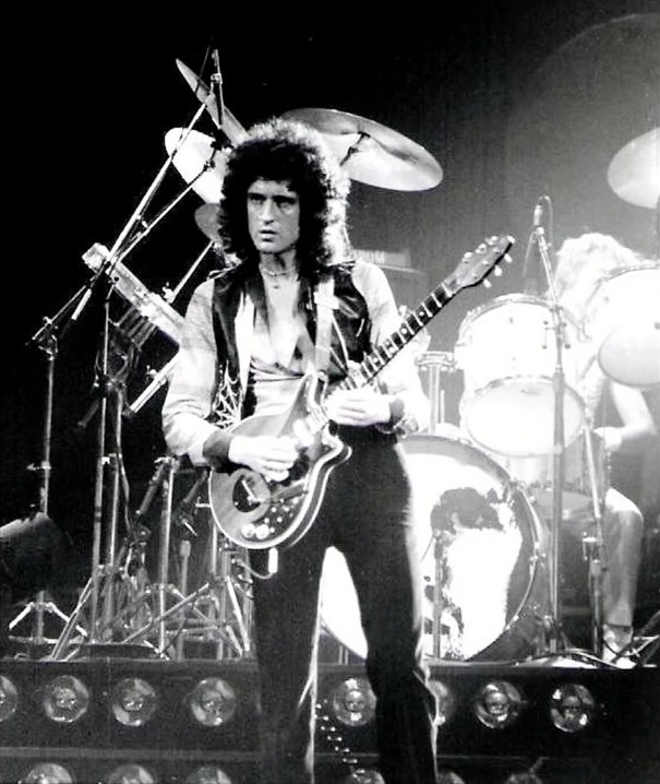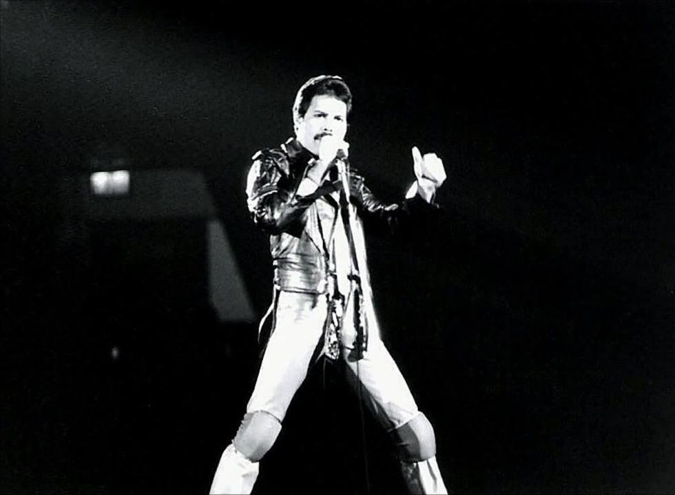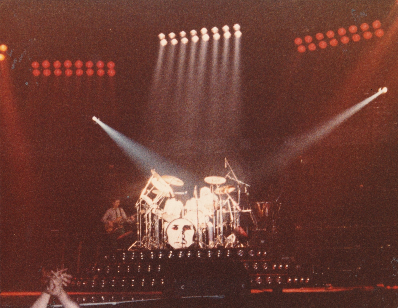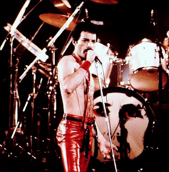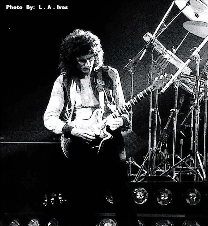 Freddie now emerges for the encore of We Will Rock You on the shoulders of a crew member dressed as Darth Vader. After doing the gag every night for a few months, the band were forced to retire it after learning that Star Wars creator George Lucas was planning to threaten legal action against Queen (what a way to respond to free publicity!). The third set of photos was taken by L.A. Ives, and the fourth by John Guarino. More pics from this show can be found at http://www.rockpicsalive.com. |