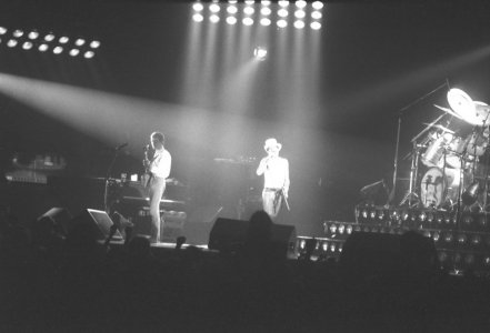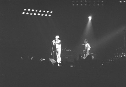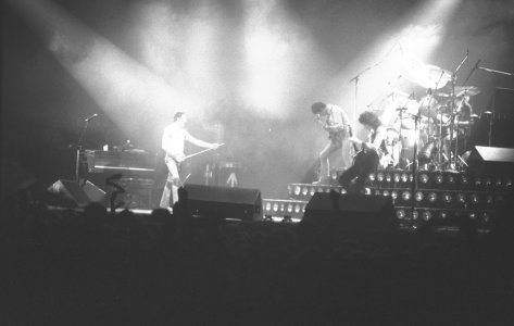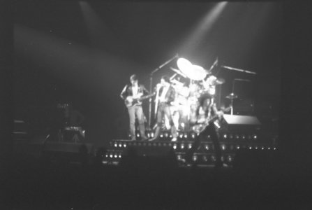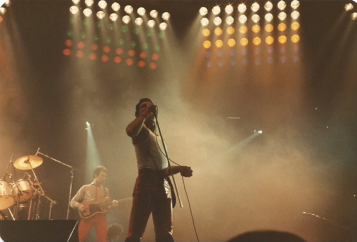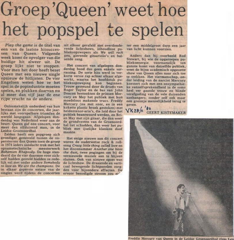 Queen's gigs in The Netherlands would now be played at the Groenoordhallen in Leiden. Bands often made this transition when engineers determined that their lighting rigs grew beyond what the Ahoy in Rotterdam could handle. Before Mustapha, Freddie notices some bicycle bells in the audience and comments on it. But unfortunately for these ambitious audience members, Queen aren't playing Bicycle Race on this tour, nor will they ever again (although Brian May does tease them with a few of the trills from the guitar solo). At the end of the second chorus of Need Your Loving Tonight, Freddie adds a not so quaint "fuck me" before Brian jumps into the guitar solo. Brian, after Now I'm Here: "Good evening, folks of Holland. You know you sing.. so beautifully. You know, you sang on our live album. Did you know that? Good, good. We'd like you to do a special bit of singing for us. Will you do that?" The audience knows exactly what's coming next. "This is called Love Of My Life." The audience sing every word to perfection, to which Mercury calls "the best singing I've heard in ages." Battle Theme sees Brian playing one of the synth lines on the guitar just before he leads the band back into Brighton Rock. At the end of the show, Freddie says, "You've been a truly fabulous audience tonight!" That's definitely not something he said every night. It must have been a fantastic atmosphere, as the audience sang along with nearly every song. Here is a review of the show from the next day's paper. The first picture was taken by Martin de Jong. The fifth photo set was taken by Peter Koks, and the last set was taken by Tim de Scally (the last of which was snapped shortly after the show ended; Tim also submitted the fourth set). |