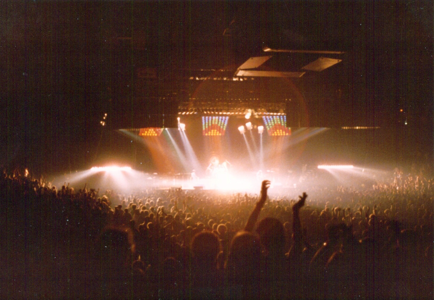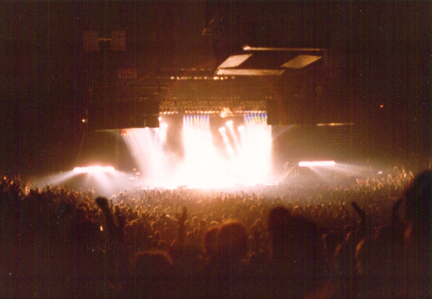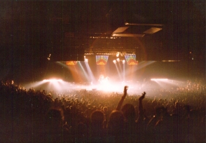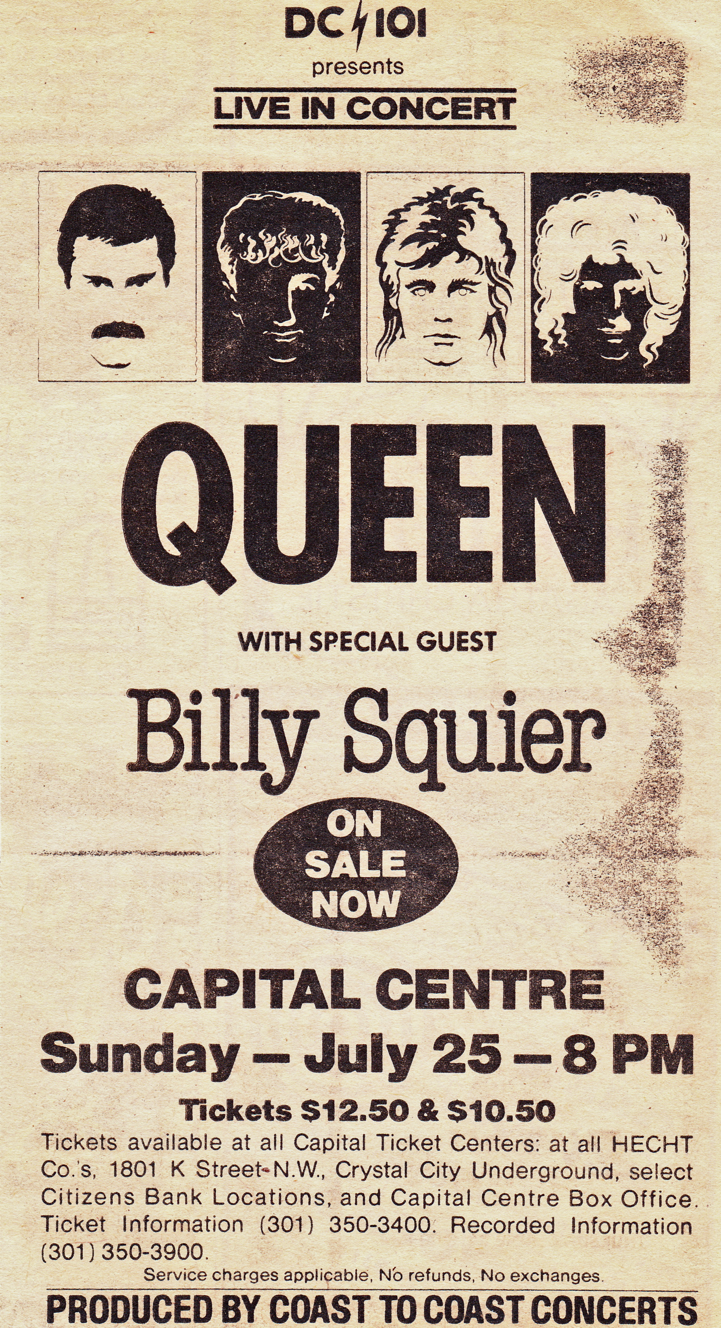 An overall very complimentary review of this show from the Landover Post erroneously refers to non-existing songs called "Bus" and "Hot Space." The ad and pin photos were submitted by Jeffrey Lee. The two sets of live shots were taken by Bill Minter and Charlie Bell Sr. respectively. |