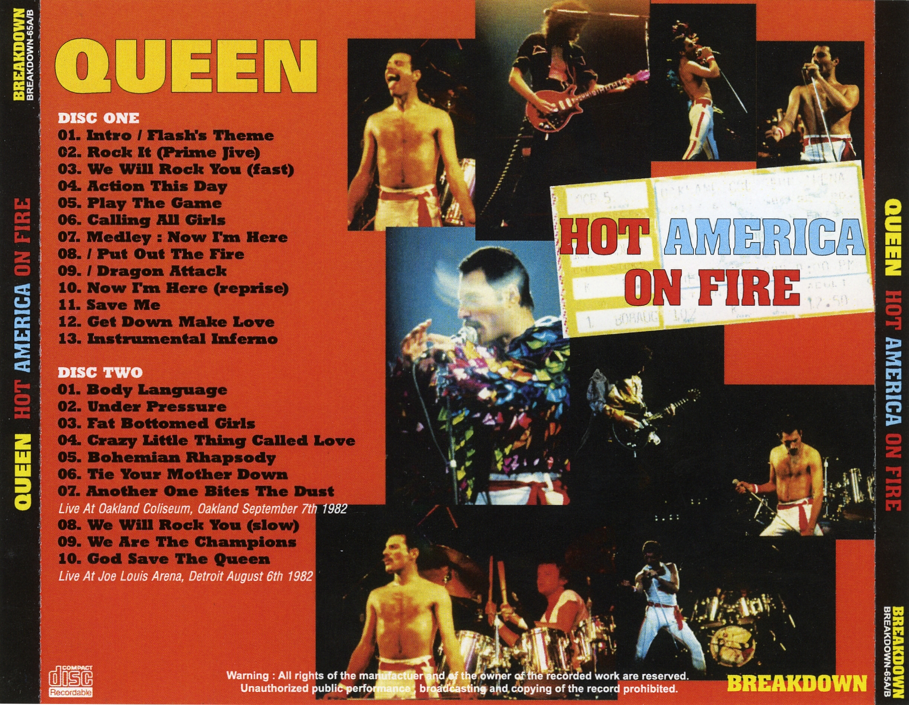 The second encore from Detroit is tagged onto the Breakdown bootleg of the Oakland show, as the Oakland tape cuts out after Another One Bites The Dust. |