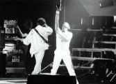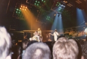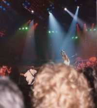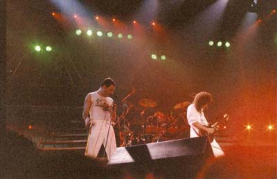 This is the first of ten Magic tour shows to be held indoors (with Brussels, Munich, Zürich, and Vienna being the other cities). Before the show begins, the audience sing a Dutch football song. After the second song, Freddie is dripping with energy, shouting, "How are you bunch of cocks?" The audience then begin to sing their football song again upon Freddie's request, and the band join in, much to the delight of everyone on hand. They would sing the football song a few more times tonight, and at the two Leiden concerts in the near future. Freddie delivers what is undoubtedly his definitive live version of A Kind Of Magic tonight, while Brian adds some very tasty guitar lines in the extended end section. Then, after a lengthy and adventurous vocal exchange with the audience, Freddie simply says, "Beautiful." After Under Pressure, he tells the jubilant crowd, "Without a doubt, you must be the best singers around, really." He goes on, "I don't say... oh, you want a beer, darlings?" He complies and hands it to someone in the front row. "Don't drop the fucking thing! Pass it around, you bugger. There's enough for everybody." Roger wants to go into the breakdown of Another One Bites The Dust a bit too soon, but realizes that the jam is continuing onward. At the same time, Freddie insists, "Keep going!" The impromptu sounds more like the 1985 versions tonight, and it would generally be played like this for the remainder of the tour. Naturally, since it is an improvisation, it will have its differences from night to night. Brian has a bit of trouble with the chording towards the end of the first verse of Now I'm Here. The audience sing along to Love Of My Life at an astounding volume, as per the Live Killers version they have all heard. An audience member even adds "Beautiful" after the first verse, just as Freddie did on the live album at that spot. After he gets to the piano to start Bohemian Rhapsody, Freddie makes the first of many chilling comments on this tour about his health (the benefits of hindsight make it seem so, anyway): "This is what happens when you get too old. Your fucking energy runs out half way through the set!" Freddie, before Crazy Little Thing Called Love: "You know what this guitar means, right? It can only mean one song because it's all I know on this damn guitar. But... let's try and do it." Friends Will Be Friends is played for the first time at this show, and it is placed between We Will Rock You and We Are The Champions, something which surely surprises people who have seen Queen on previous tours. For these two nights in Leiden (contrary to the well-known Wembley and Budapest versions) the band perform the complete song. Freddie struggles a bit on the final "Friends Will Be Friends" of each chorus, as he has pushed his voice to its limit all evening. The band have trouble figuring out how to end the song, resulting in plenty of choruses before they finally lead into We Are The Champions. Pics 6 through 9 were taken by Maurice Vreven, pics 14 through 22 were taken by Tim de Scally, and pic 46 was snapped by David van Dijk. The b/w shots are from an amateur photographer named "Ruud." The rest of the first set were taken by Arne van der Zande; prints of his fine work are available at roeldijkstra.nl. Pro pics can be seen at http://www.spaarnestadphoto.nl (thanks to Raf Foubert for the link). |