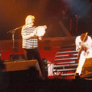 This fourth audience source taped near the stage is pretty clear-sounding with minimal tape hiss, but is a bit thin sounding. The two cuts are very brief ones for tape flips. The first couple minutes of the INXS opening set were taped as well (not included in the running time). |
