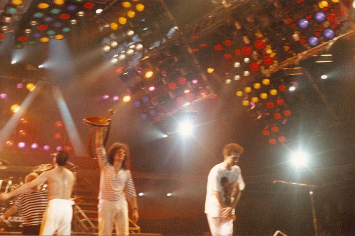 Track listing: | INXS: Same Direction [cut] Queen: One Vision, Tie Your Mother Down, football song, In The Lap Of The Gods...Revisited, Seven Seas Of Rhye, Tear It Up, A Kind Of Magic, Under Pressure, Another One Bites The Dust [cut], Who Wants To Live Forever, I Want To Break Free, impromptu, guitar solo, Now I'm Here [cut], Love Of My Life, Is This The World We Created?, (You're So Square) Baby I Don't Care, Hello Mary Lou, Tutti Frutti, Bohemian Rhapsody, Hammer To Fall, Crazy Little Thing Called Love, Radio Ga Ga, We Will Rock You, Friends Will Be Friends, We Are The Champions, God Save The Queen |
