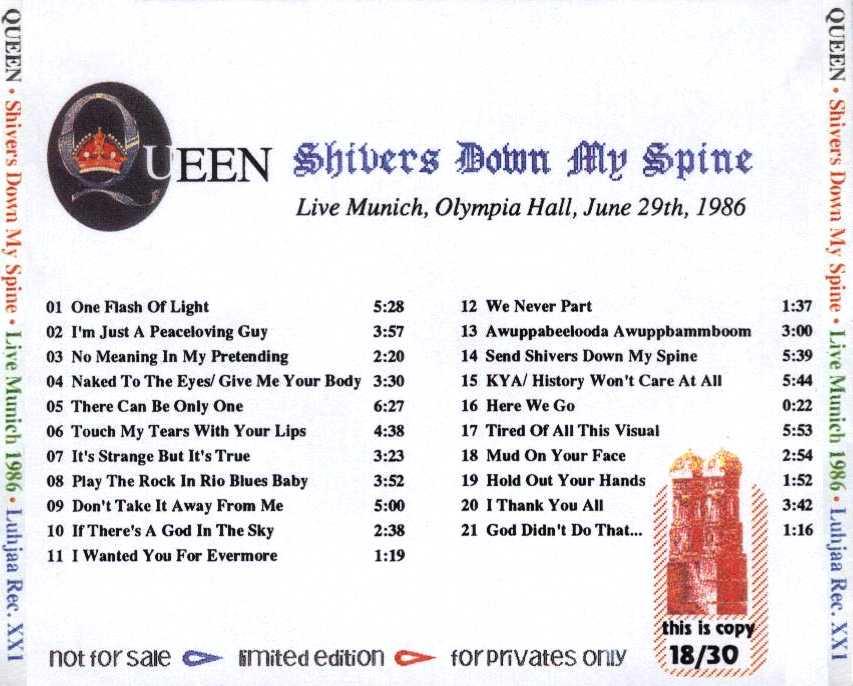 This is the first time Freddie would say, "We're gonna stay together until we die." He adds, "I mean, a couple nights... a of couple days." He goes on, "Anyway, we'd like to do a new song written by Brian. This is from the new album. If you don't know it yet, this is a preview. It's called Who Wants To Live Forever." He sings the second line first, so he reverses them: "There's no place for us; there's no time for us." Perhaps he did this on purpose, thinking nobody would notice the difference anyway.